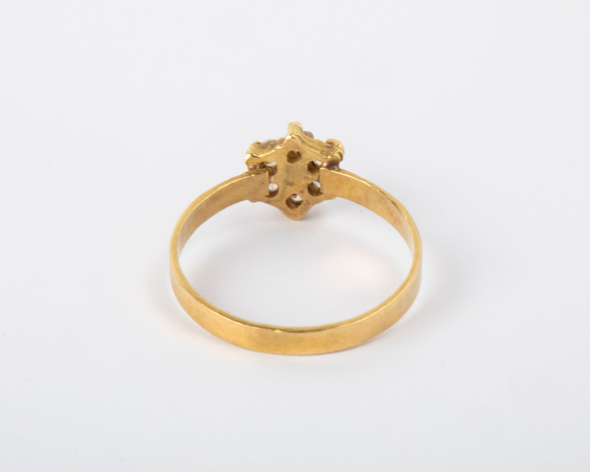 11 ESTIMATION: 40 / 60 € Petite bague en or jaune (750 millièmes) sertie de strass formant fleur Poids Brut : 0.8 g. Tdd 38