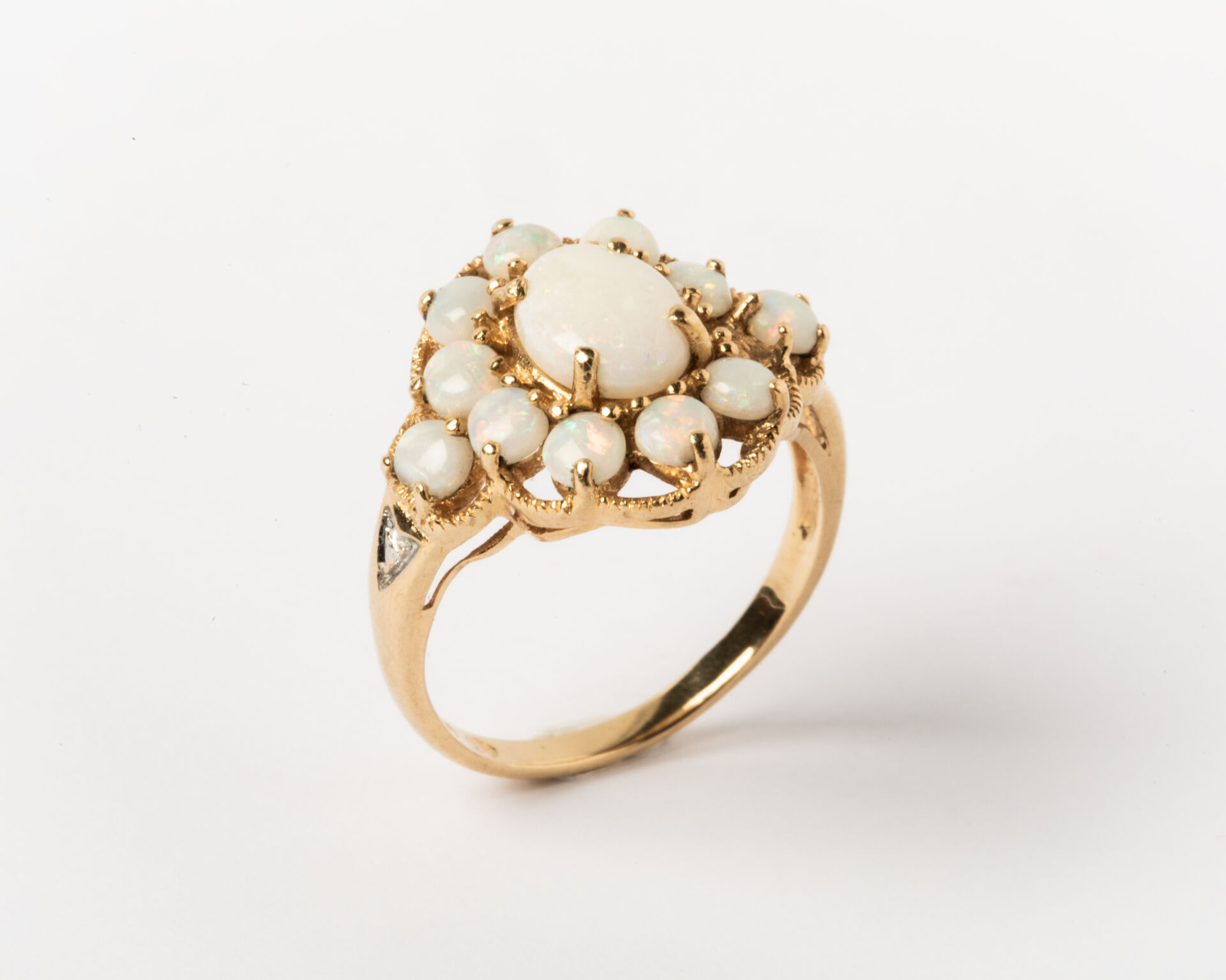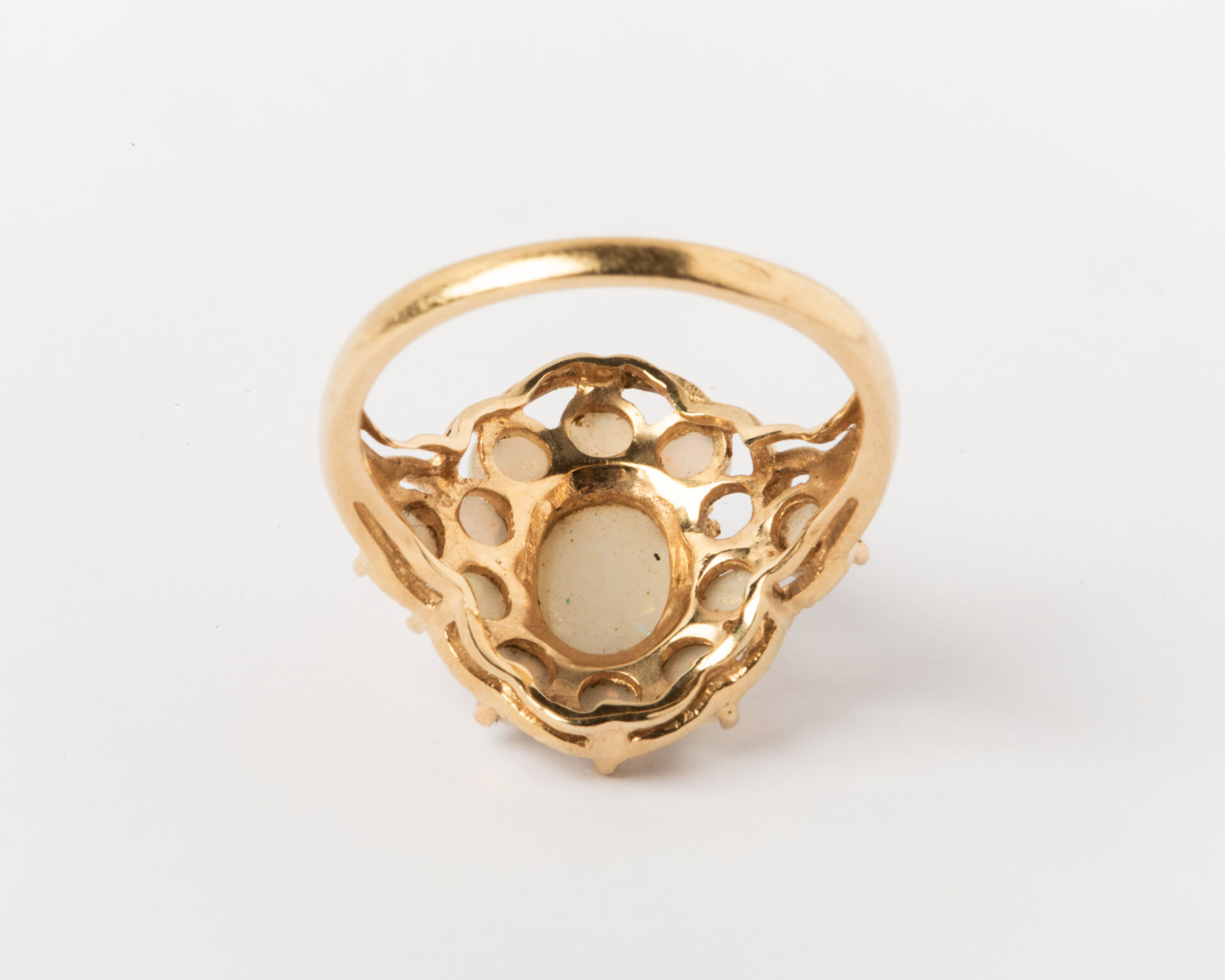 15 ESTIMATION: 150 / 200 € Bague en or 750 millième (18k) et cabochons d’opales (manque un). TDD 53. Poids brut : 3,7 g
