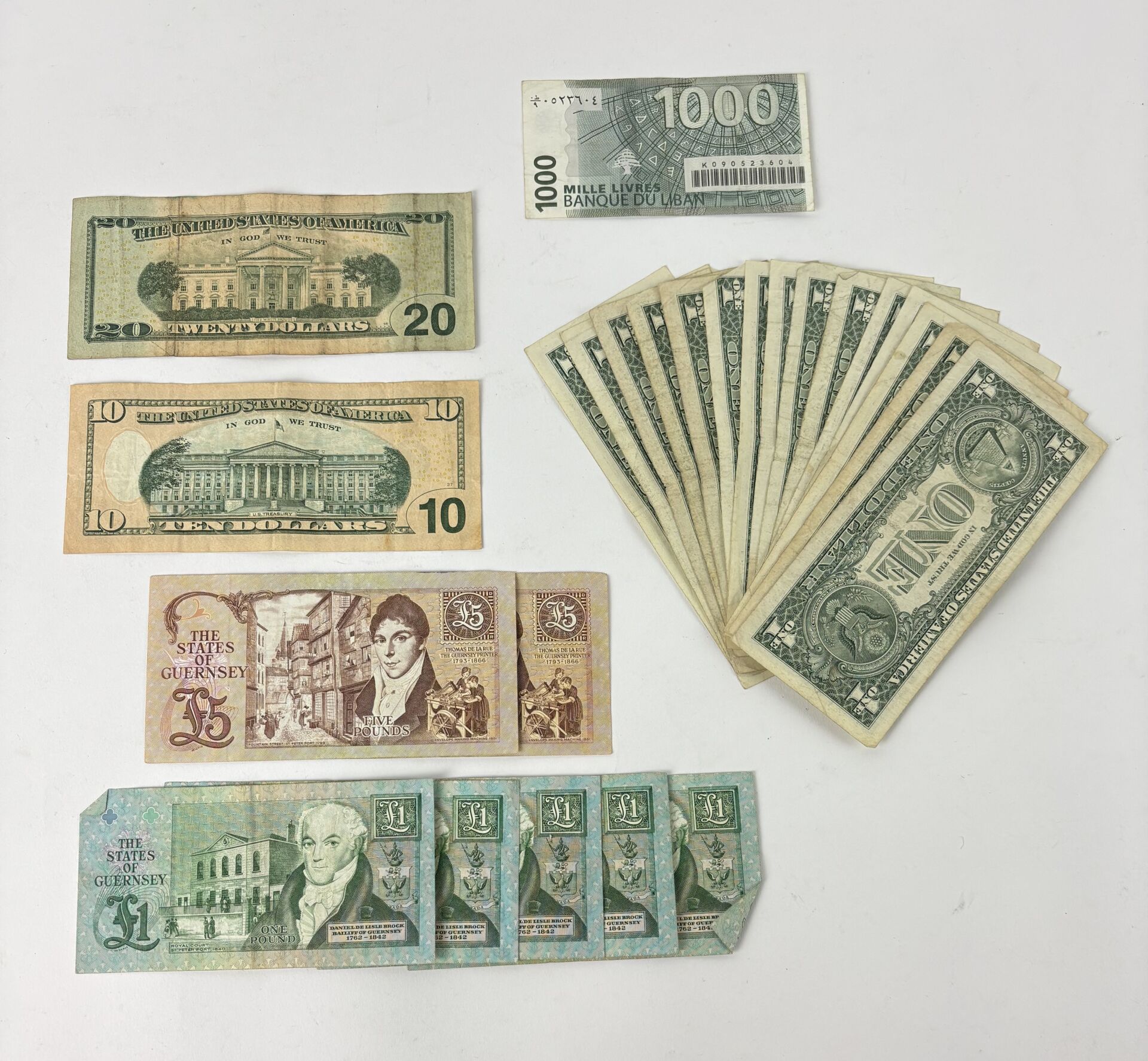 5 billets de 1 pound
