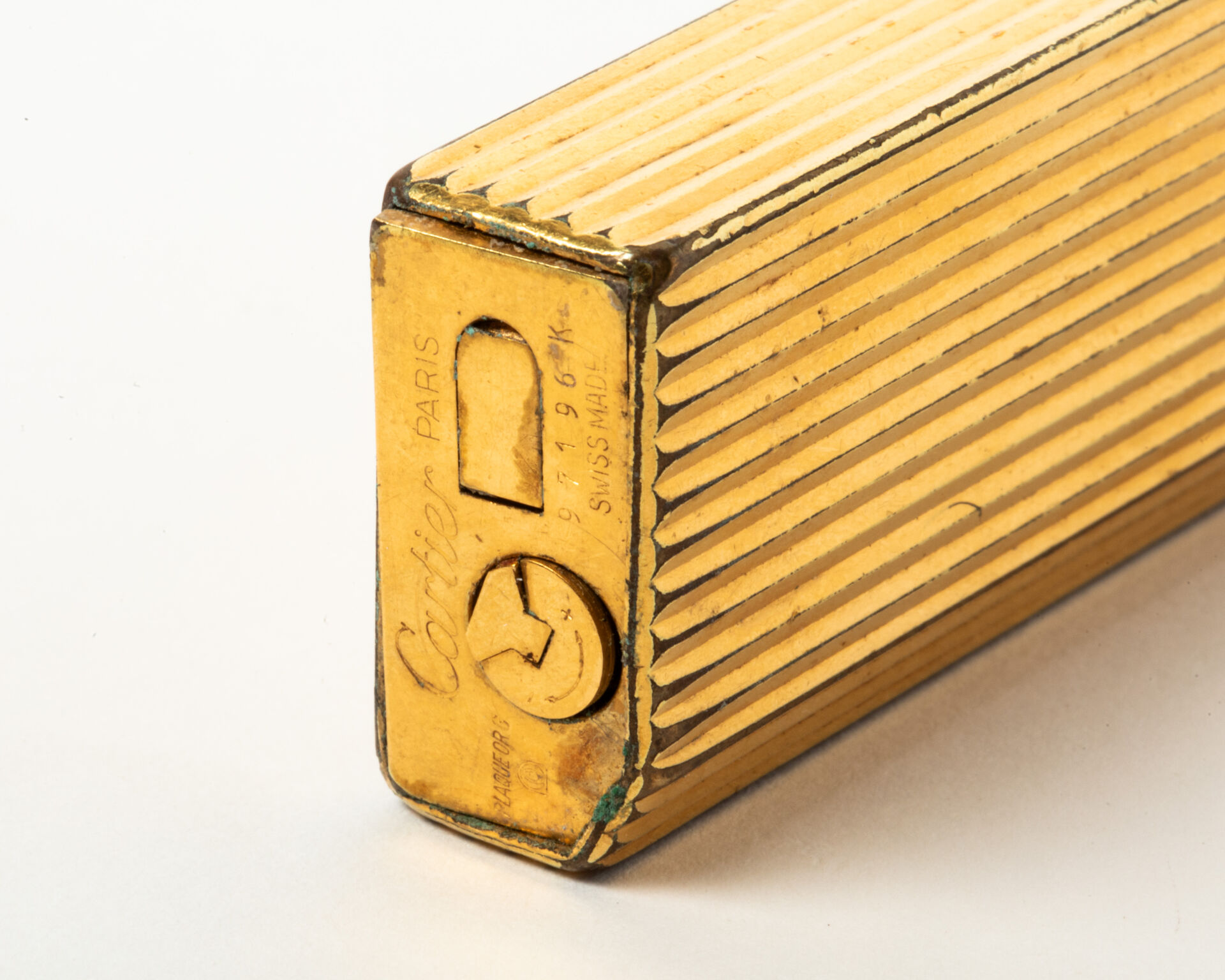 Briquet en métal doré côtelé à pan coupé