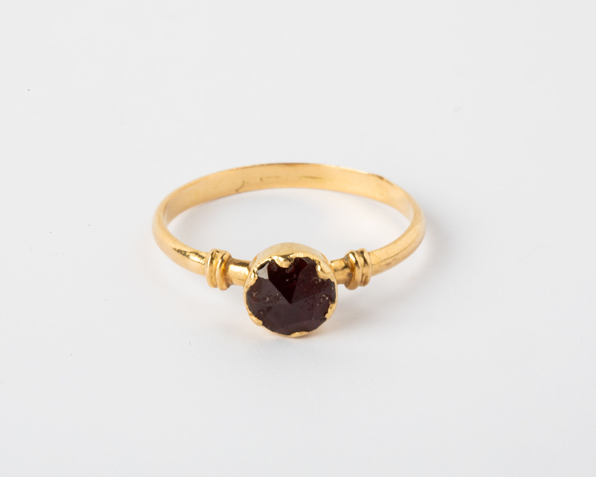 18 ESTIMATION: 50 / 80 € Bague en or jaune (750 millièmes) sertie d’un grenat Tdd 55 Poids Brut : 1.61 g.