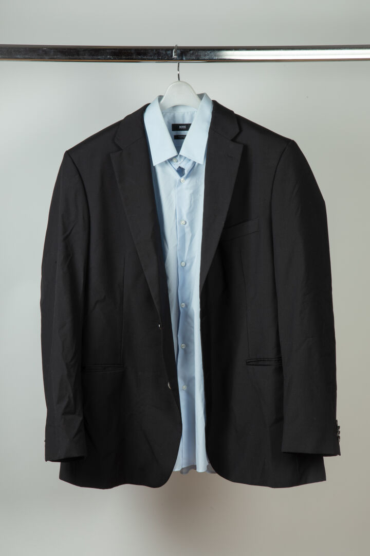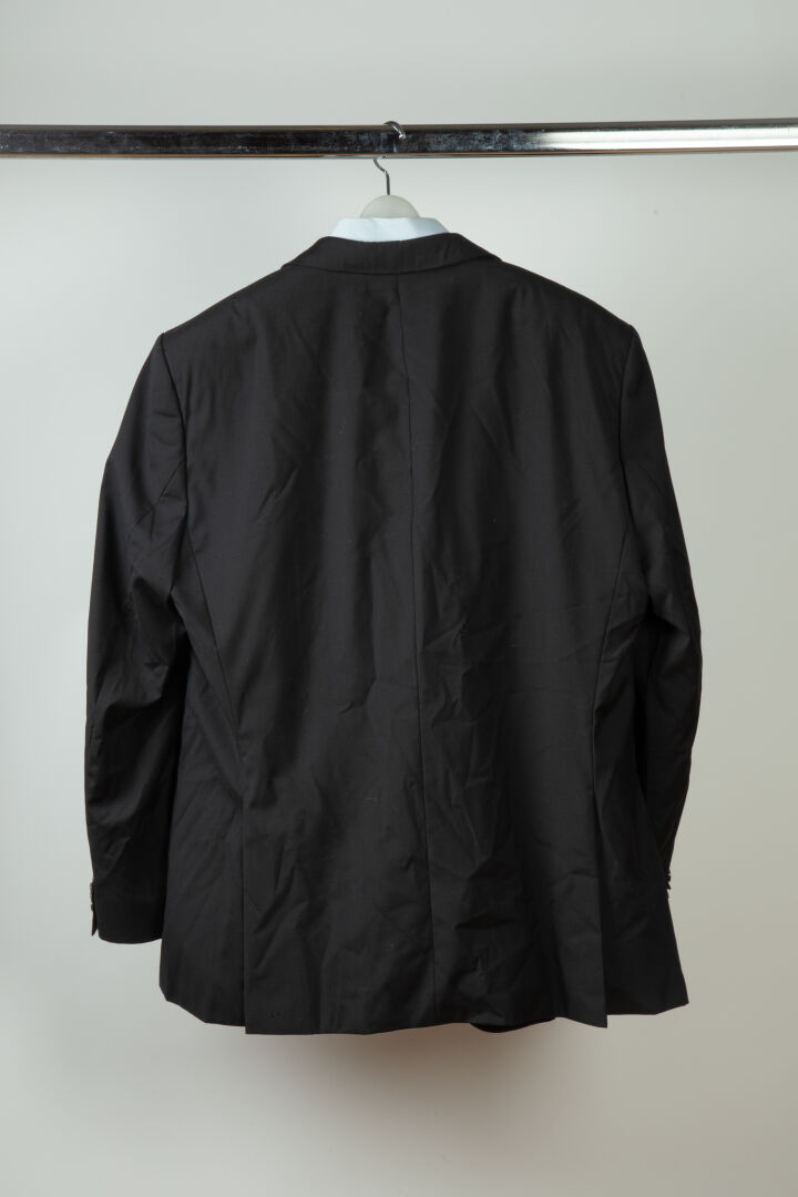 Ensemble pour homme comprenant une veste de costume en viscose et acétate noire (taille 50) et une chemise en coton bleu regular modèle Enzo (Taille 45)