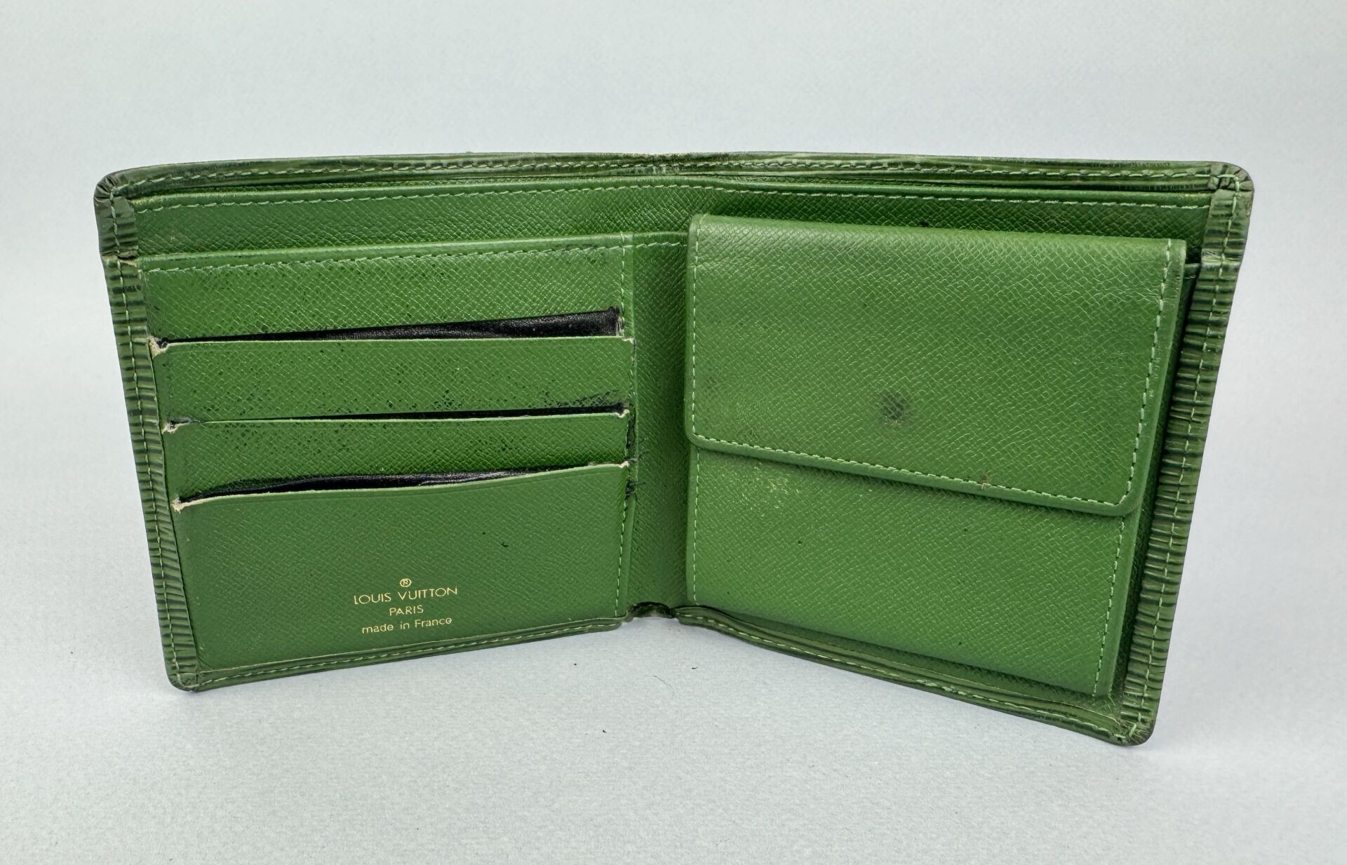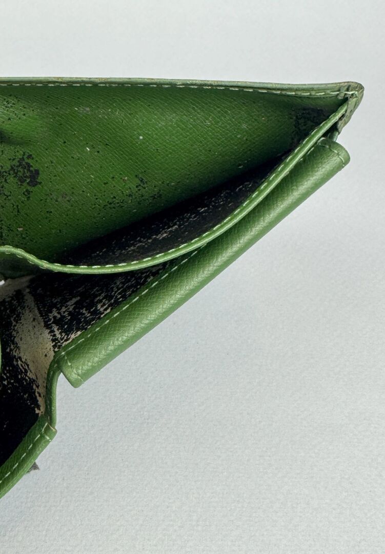 209 ESTIMATION: 20 / 30 € LOUIS VUITTON Portefeuille en cuir épi vert comprenant porte cartes, porte-monnaie Patine importante à l’extérieur, le porte carte intérieur décousu en partie droite