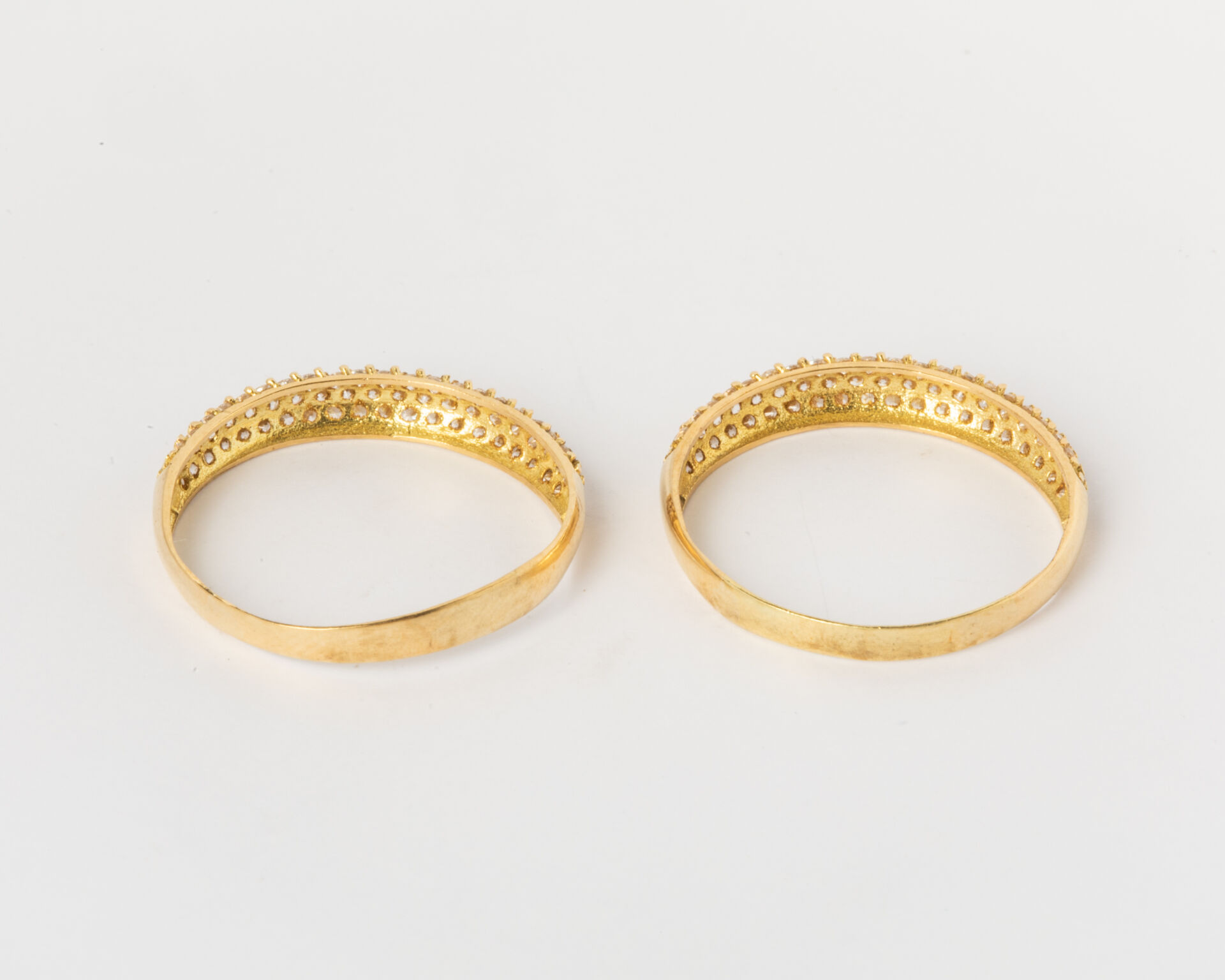 21 ESTIMATION: 100 / 120 € Deux bagues en or jaune (750 millièmes) pavées de strass Poids Brut : 2.2 g.