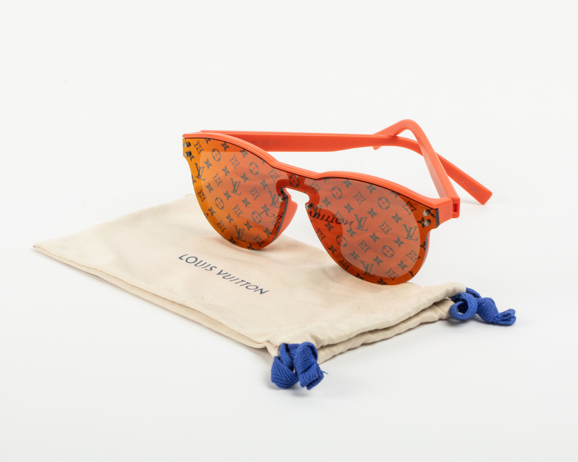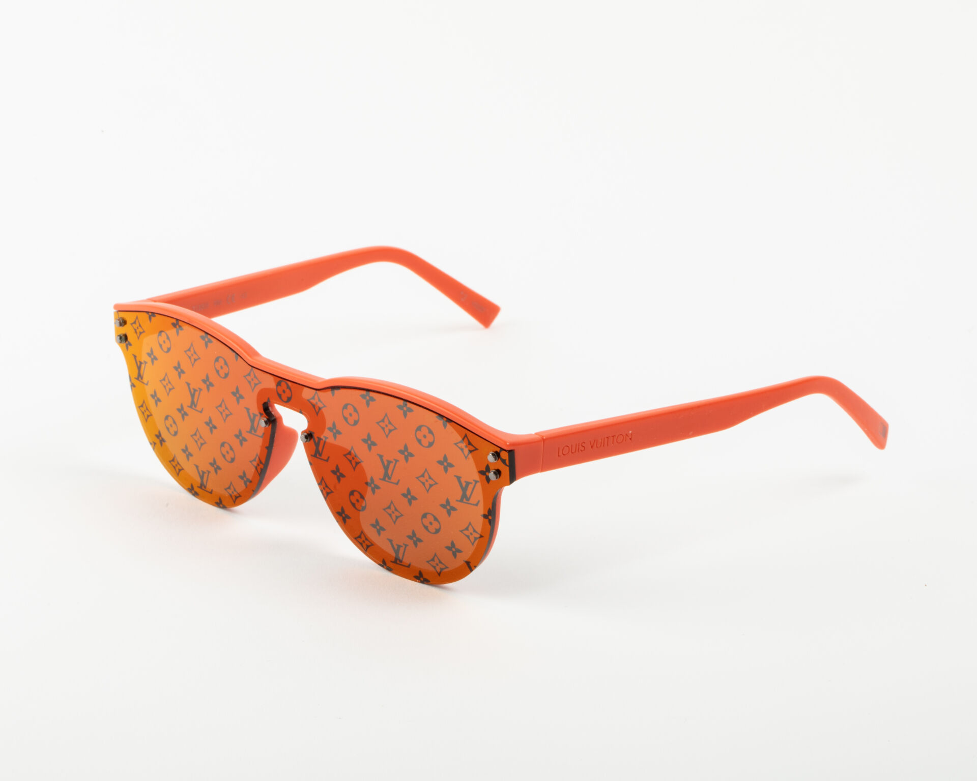 219 ESTIMATION: 50 / 80 € LOUIS VUITTON Paire de lunettes de soleil modèle Weimea à verre imprimés des logos de la marque et monture en acétate orange Dans un pochon
