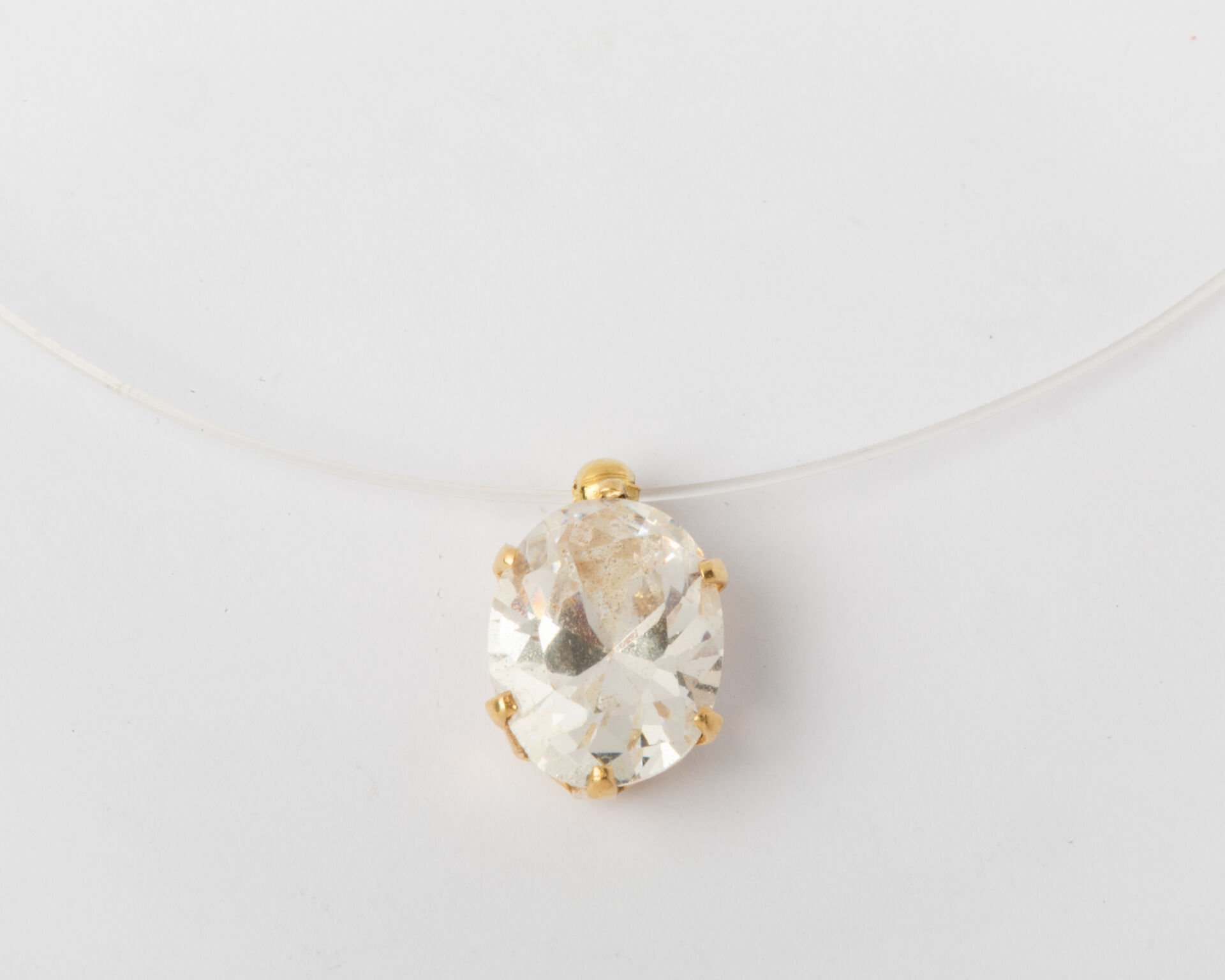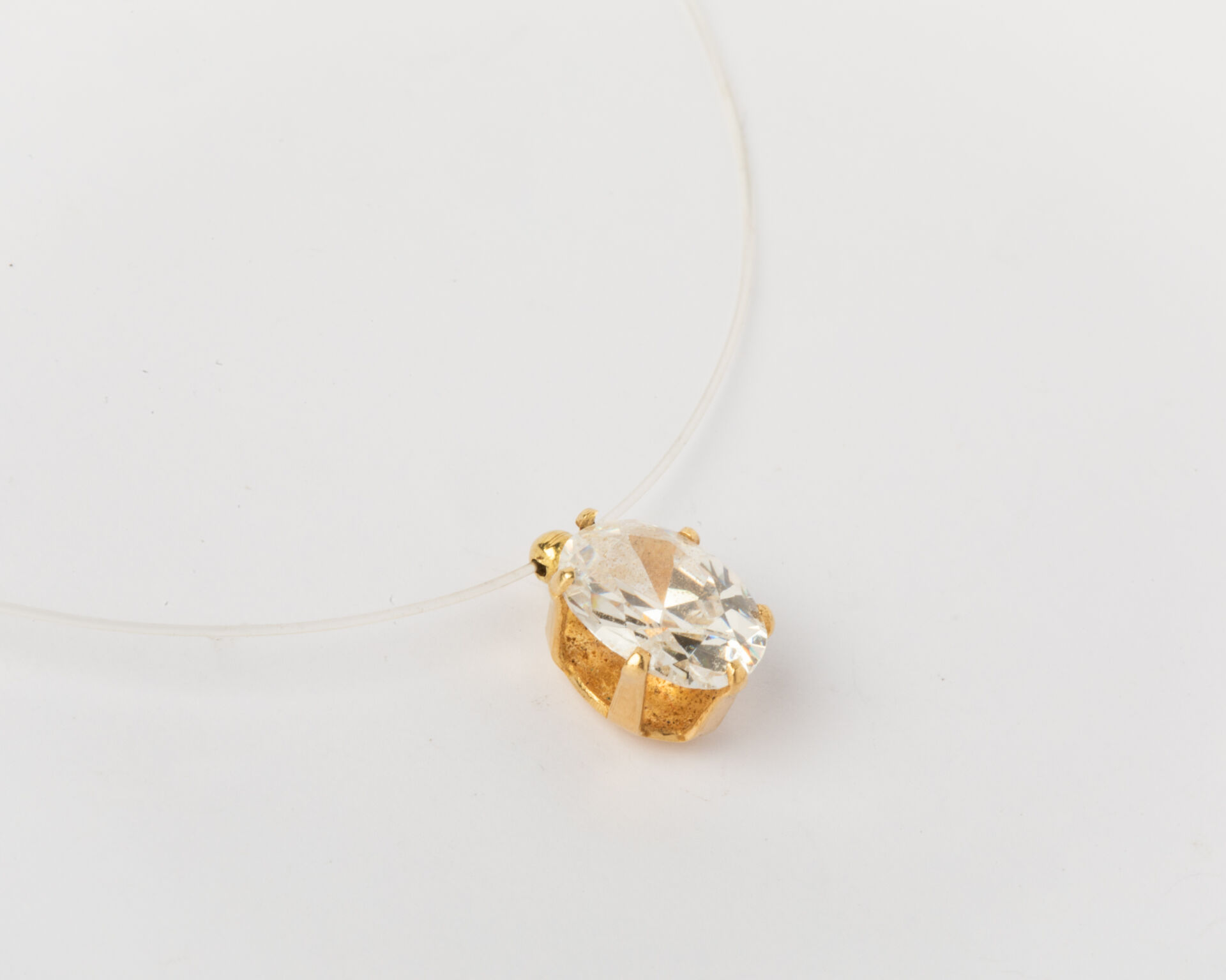 22 ESTIMATION: 30 / 60 € Collier en fil de pêche, fermoir en or 750 millième (18k) et pendentif or avec pierre. Câble tordu. Poids brut : 1,7 g