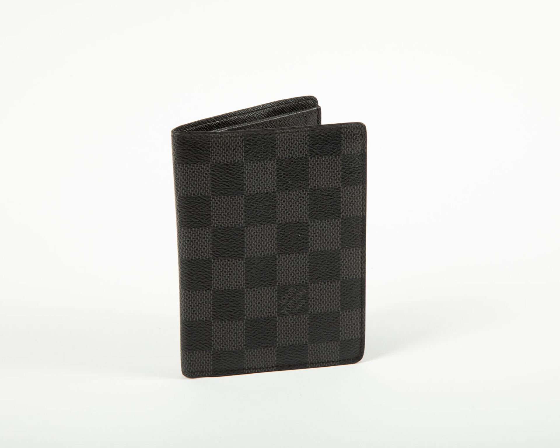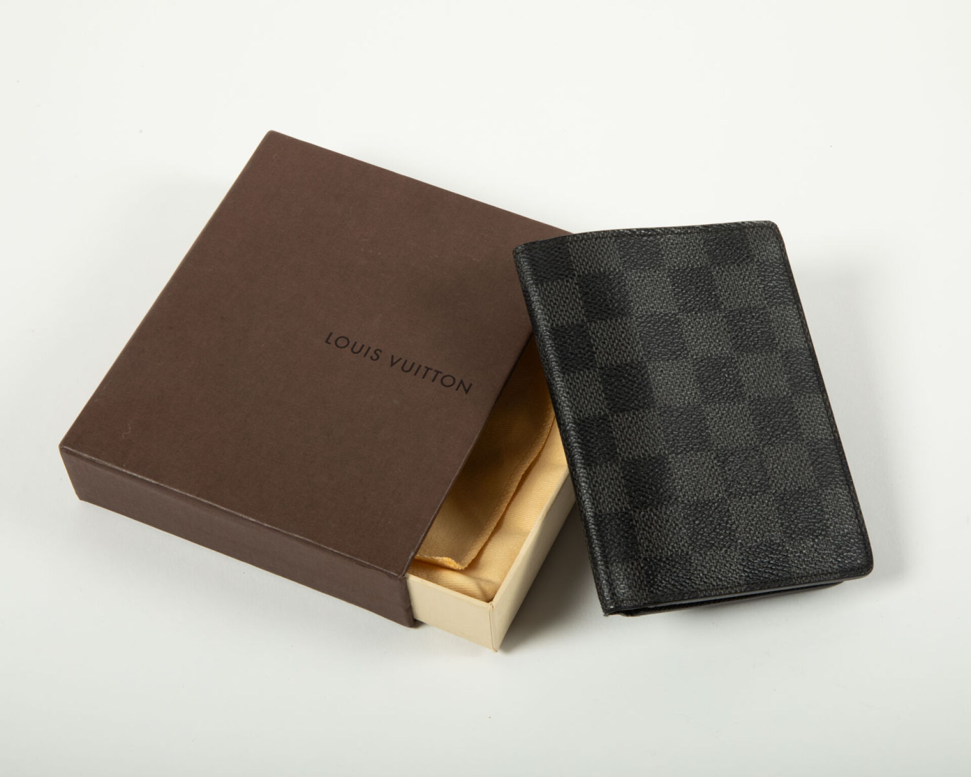 221 ESTIMATION: 80 / 120 € LOUIS VUITTON Porte-feuille en toile enduite damier graphite et intérieur en cuir grainé noir Avec dustbag et boite