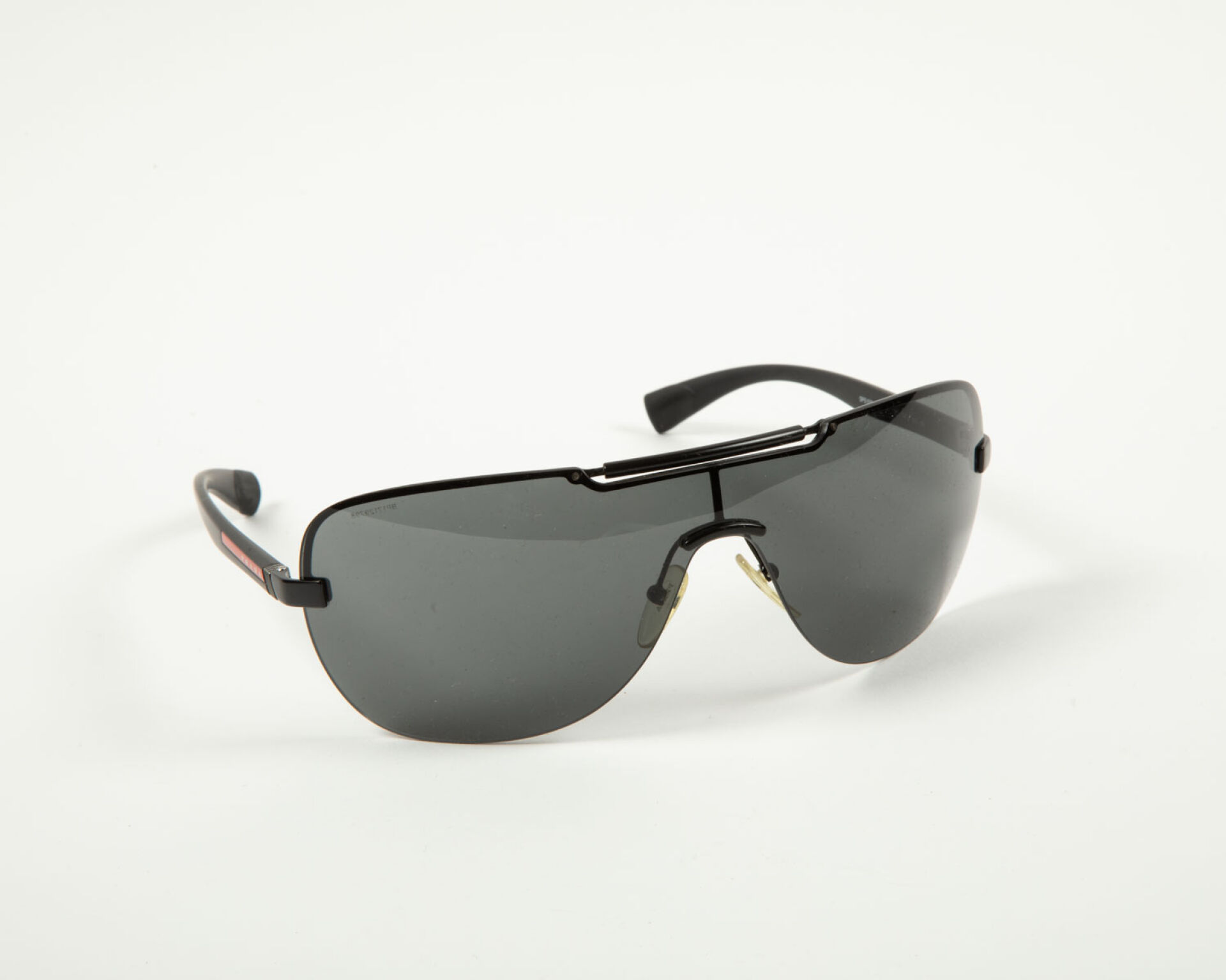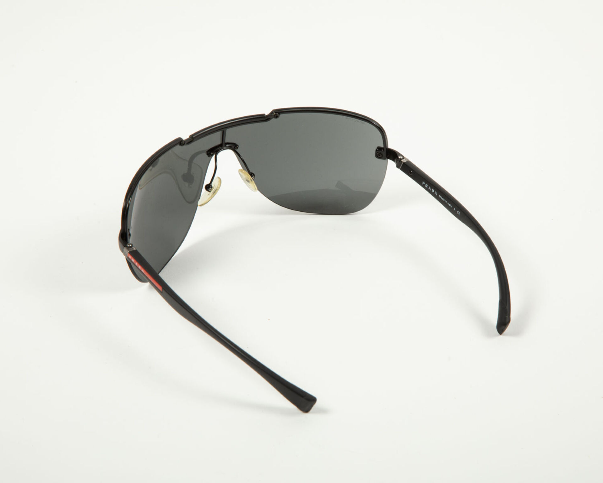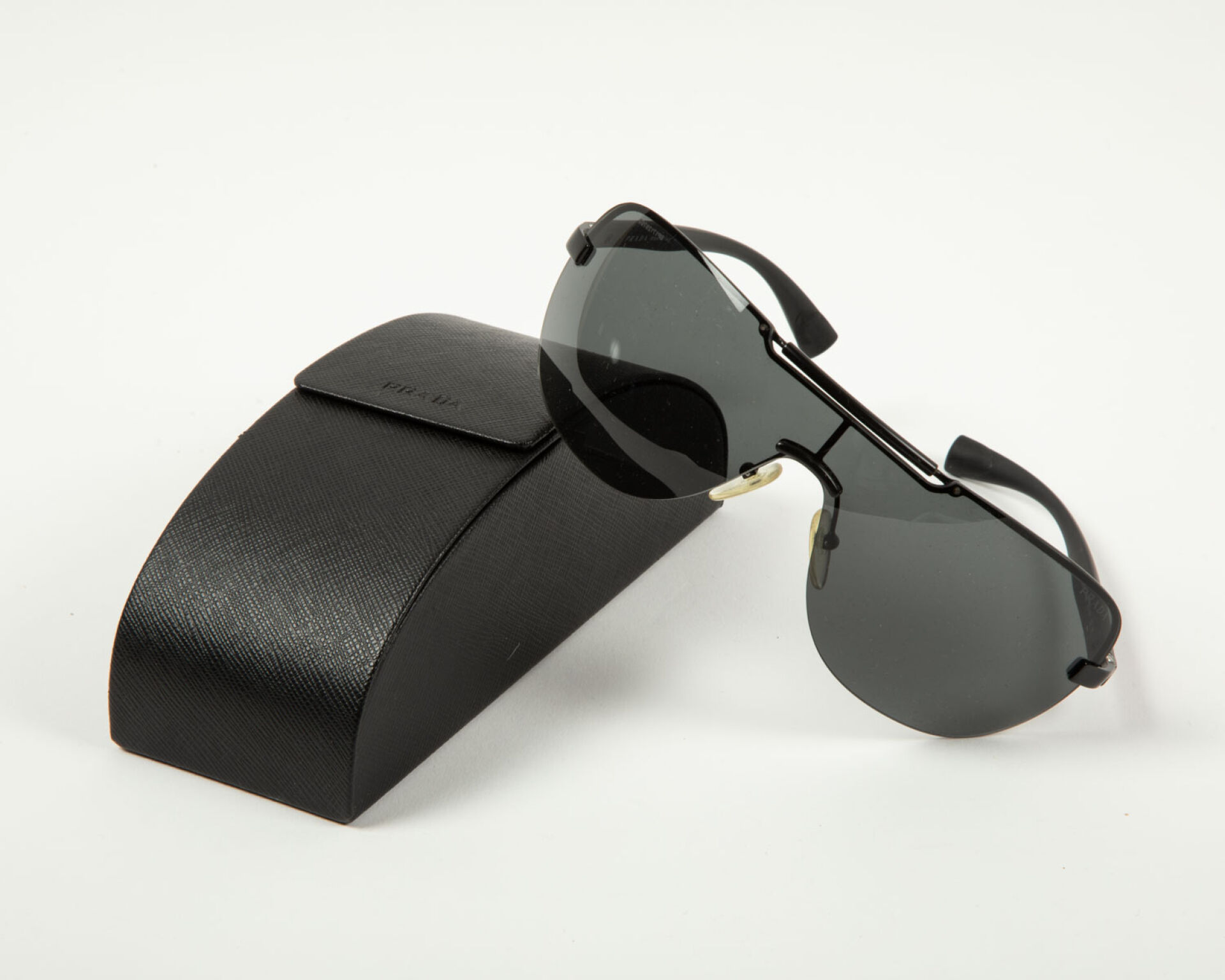 245 ESTIMATION: 30 / 50 € PRADA Paire de lunettes de soleil à structure masquée en métal noir Dans une boite