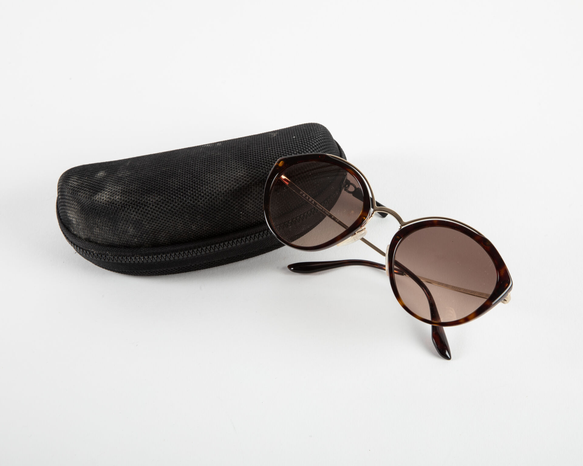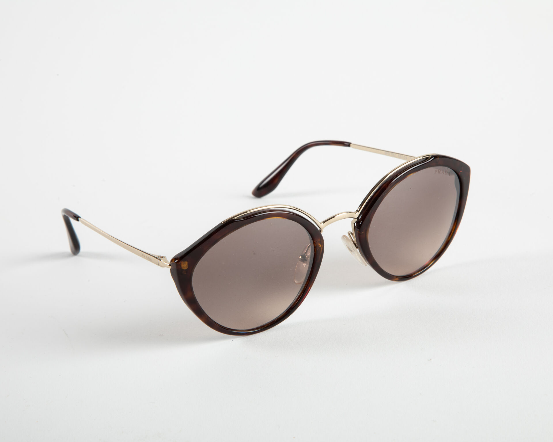247 ESTIMATION: 30 / 50 € PRADA Paire de lunettes de soleil à monture en métal doré et matériau composite imitant l’écaille