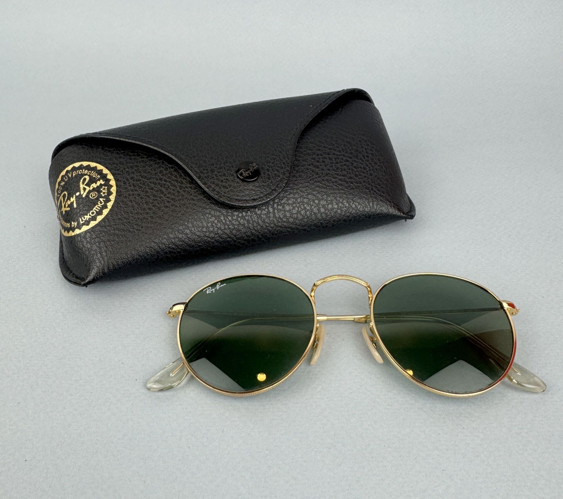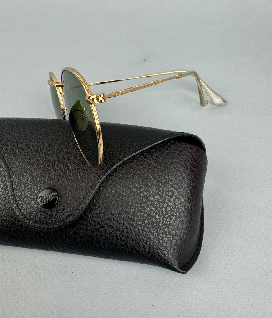 251 ESTIMATION: 20 / 30 € RAYBAN Paire de lunettes de soleil à monture en métal doré Dans un étui de la marque