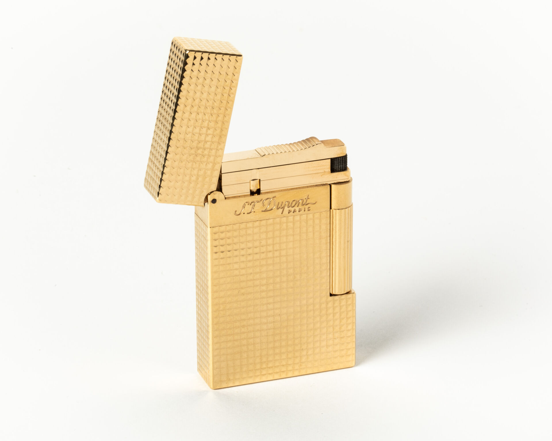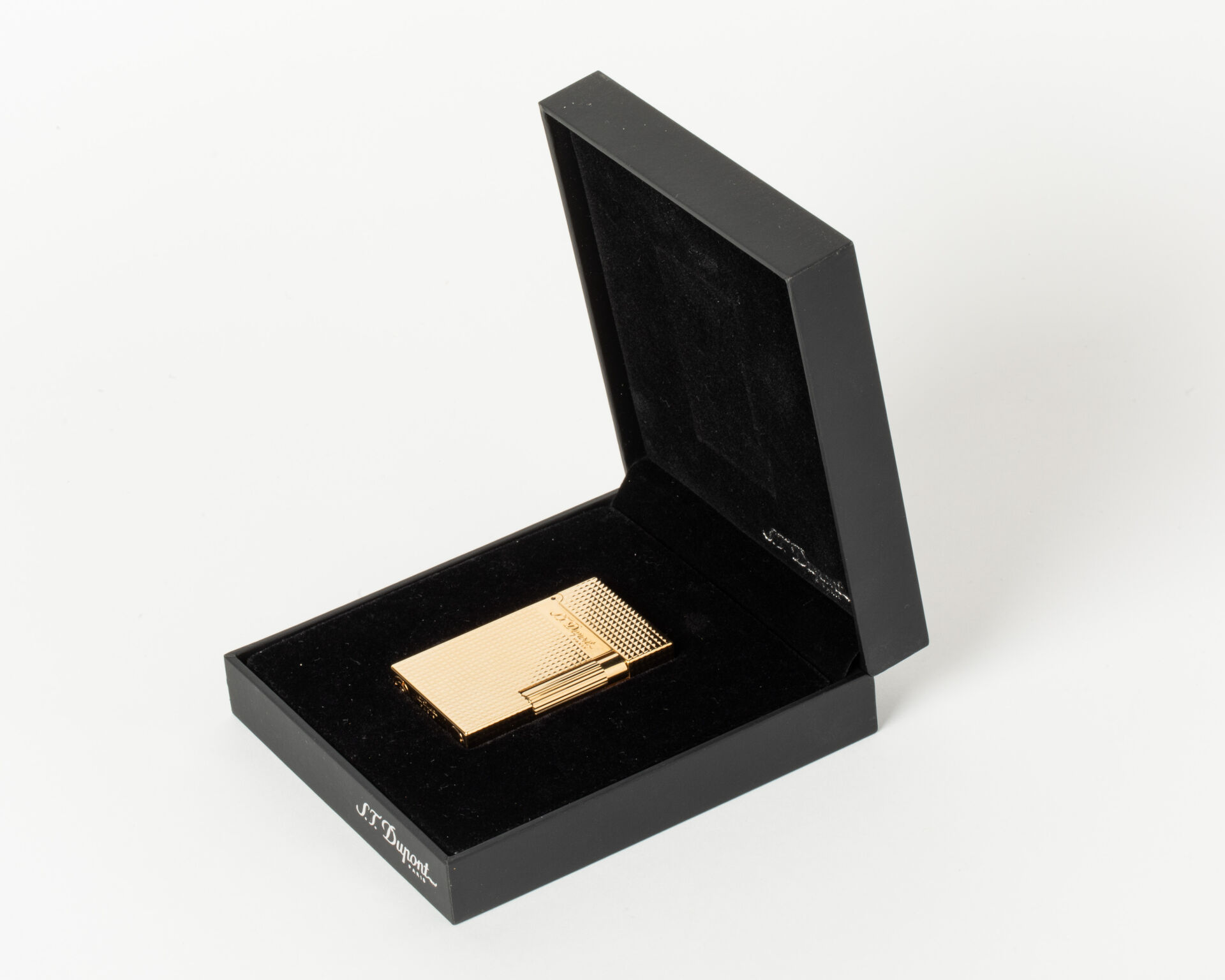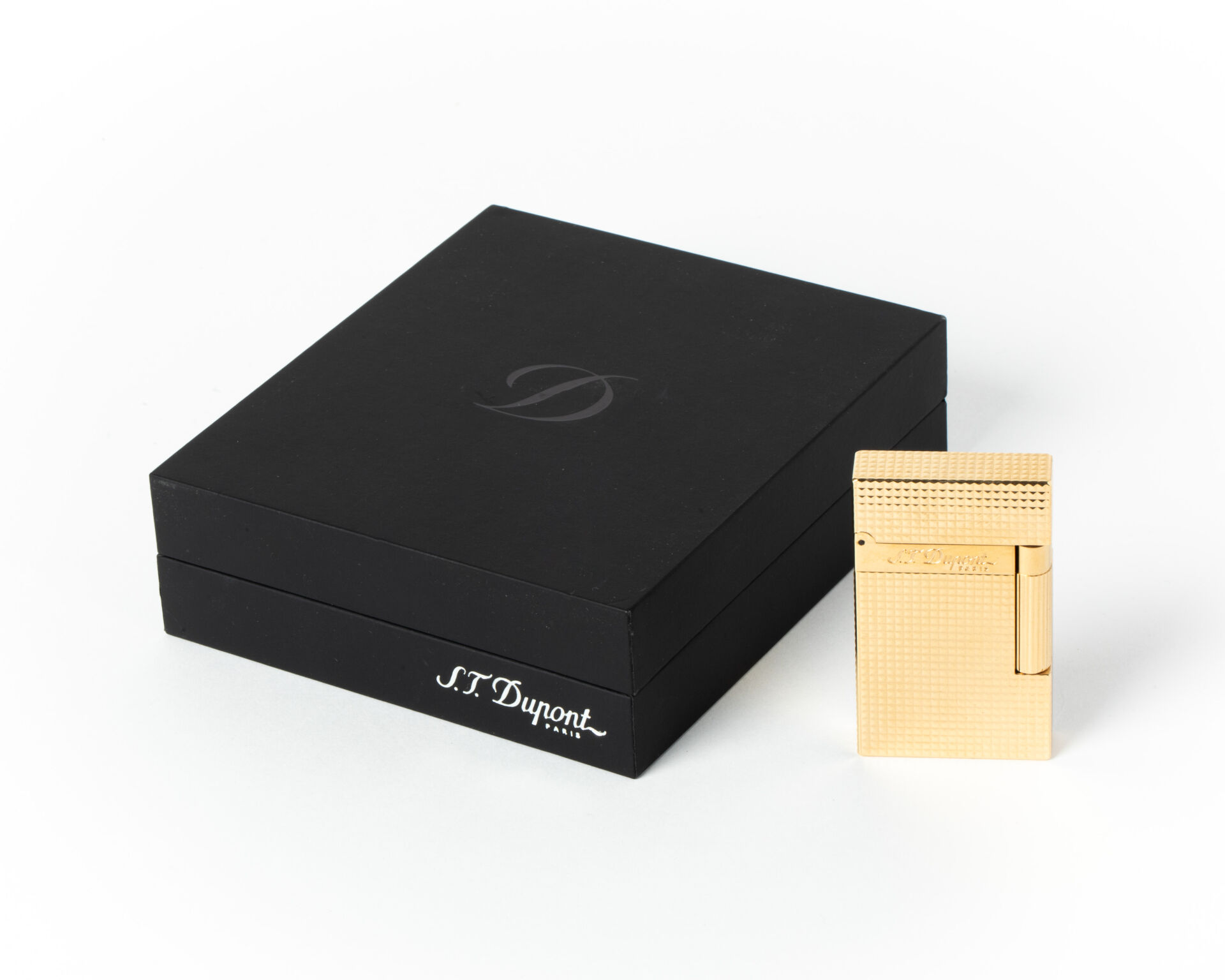 256 ESTIMATION: 100 / 150 € ST DUPONT PARIS Briquet en métal doré à décor guilloché Dans sa boîte Très bel état