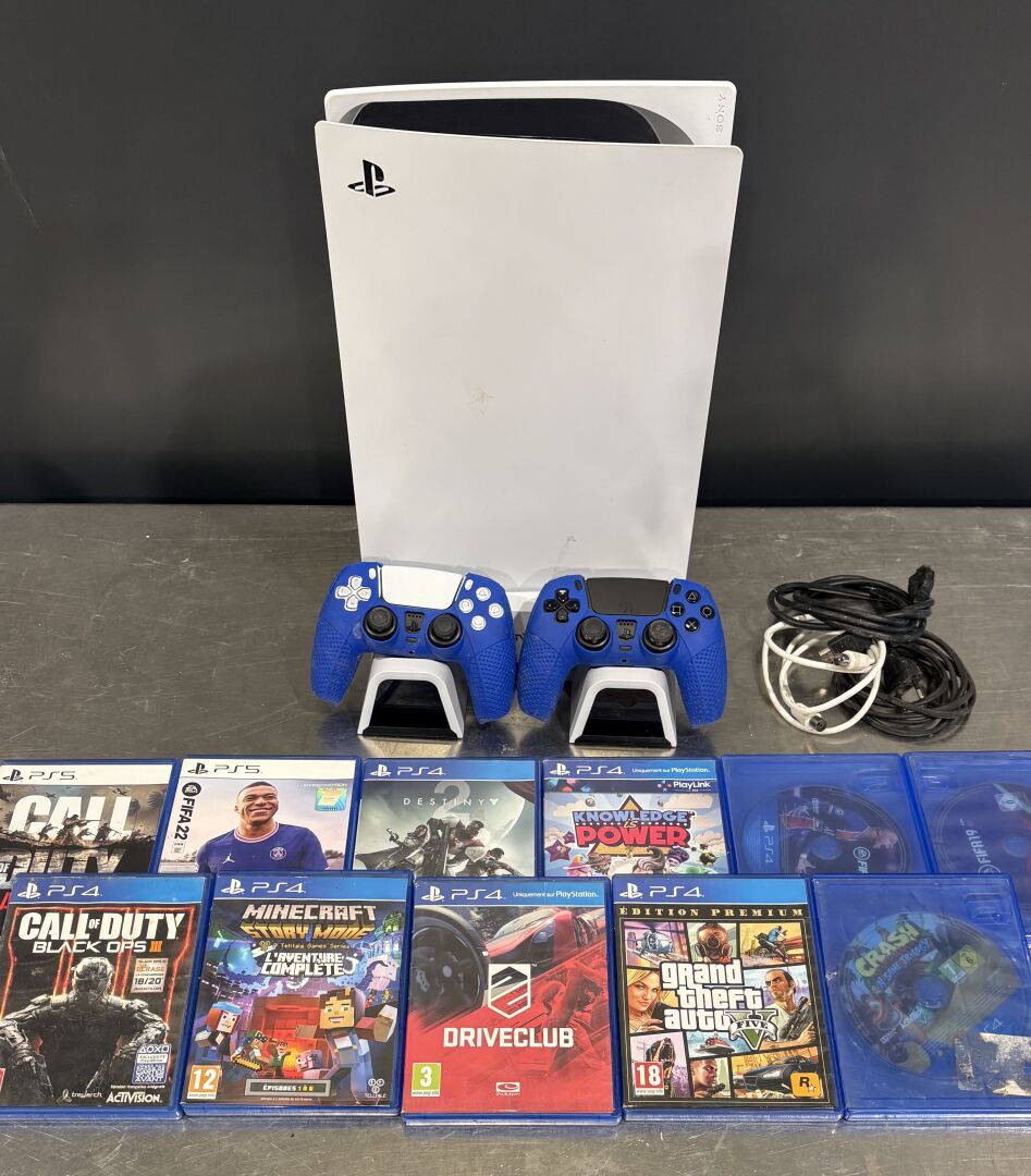 SONY – Play station 5 avec support plat et manettes intégré, deux manettes et câbles de branchement