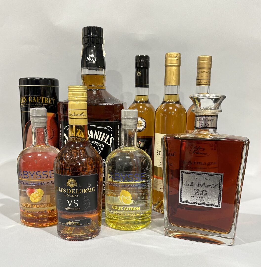 Ensemble de 9 bouteilles d’alcool comprenant :