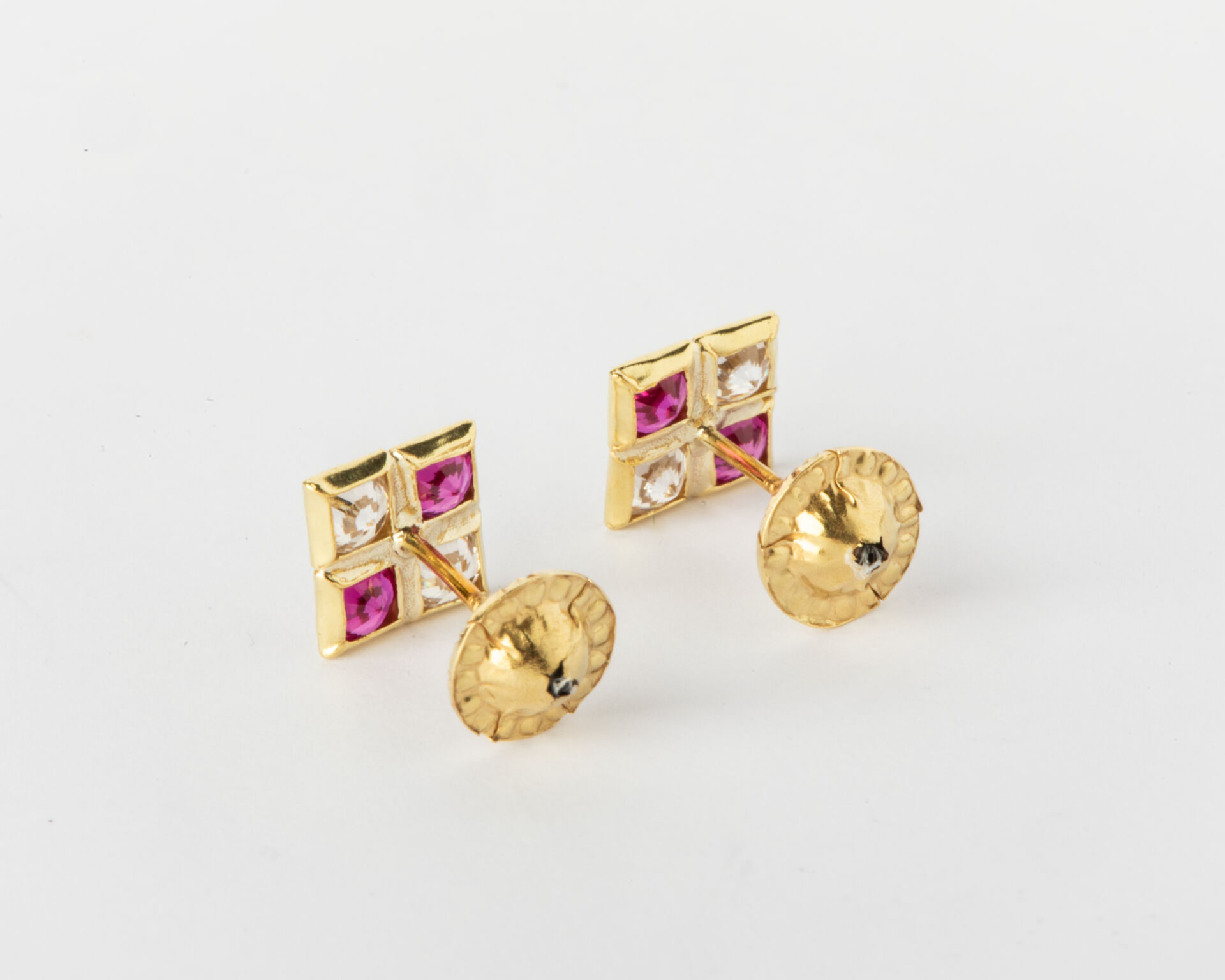 7 ESTIMATION: 10 / 30 € Paire de puces d’oreilles en or 750 millième (18k) et pierres. Travail étranger. Poids brut : 0,4 g