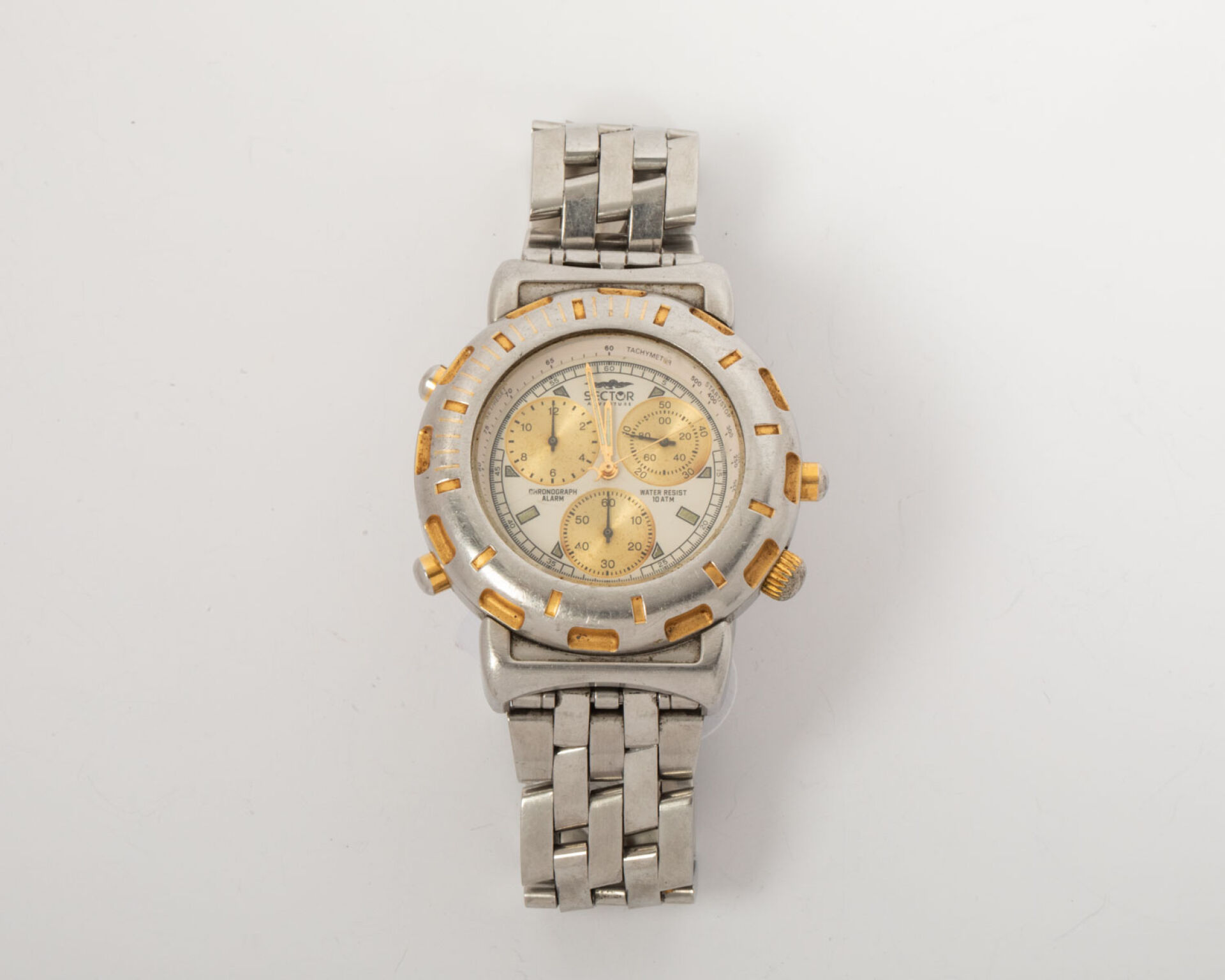 83 ESTIMATION: 10 / 20 € SECTOR, montre bracelet pour homme en acier et acier doré, boucle déployante accidentée