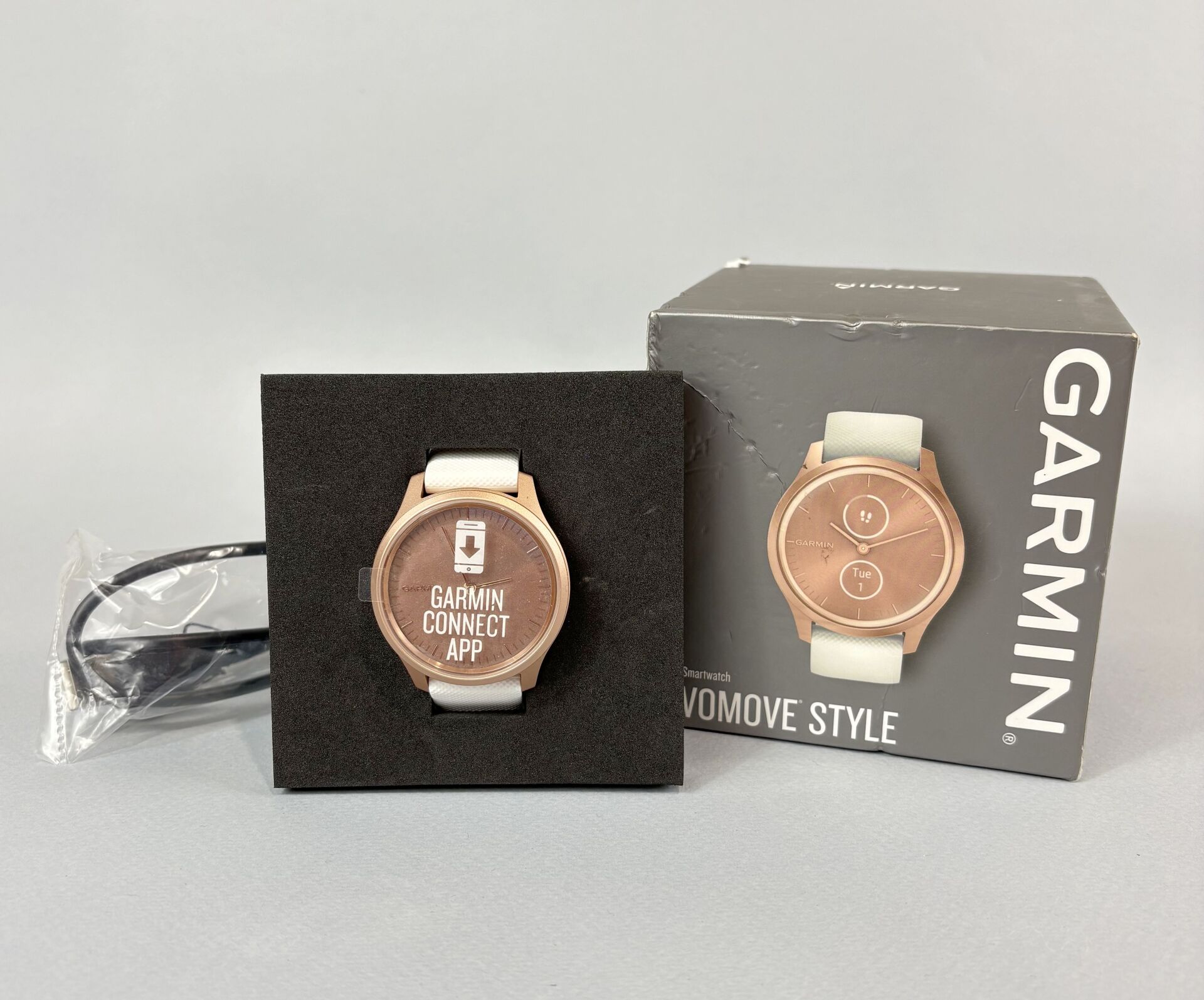 87 ESTIMATION: 40 / 60 € GARMIN Montre connectée hybrid smart watch Modèle vivo-mouv style finitions rose gold Dans sa boîte, comprenant son chargeur
