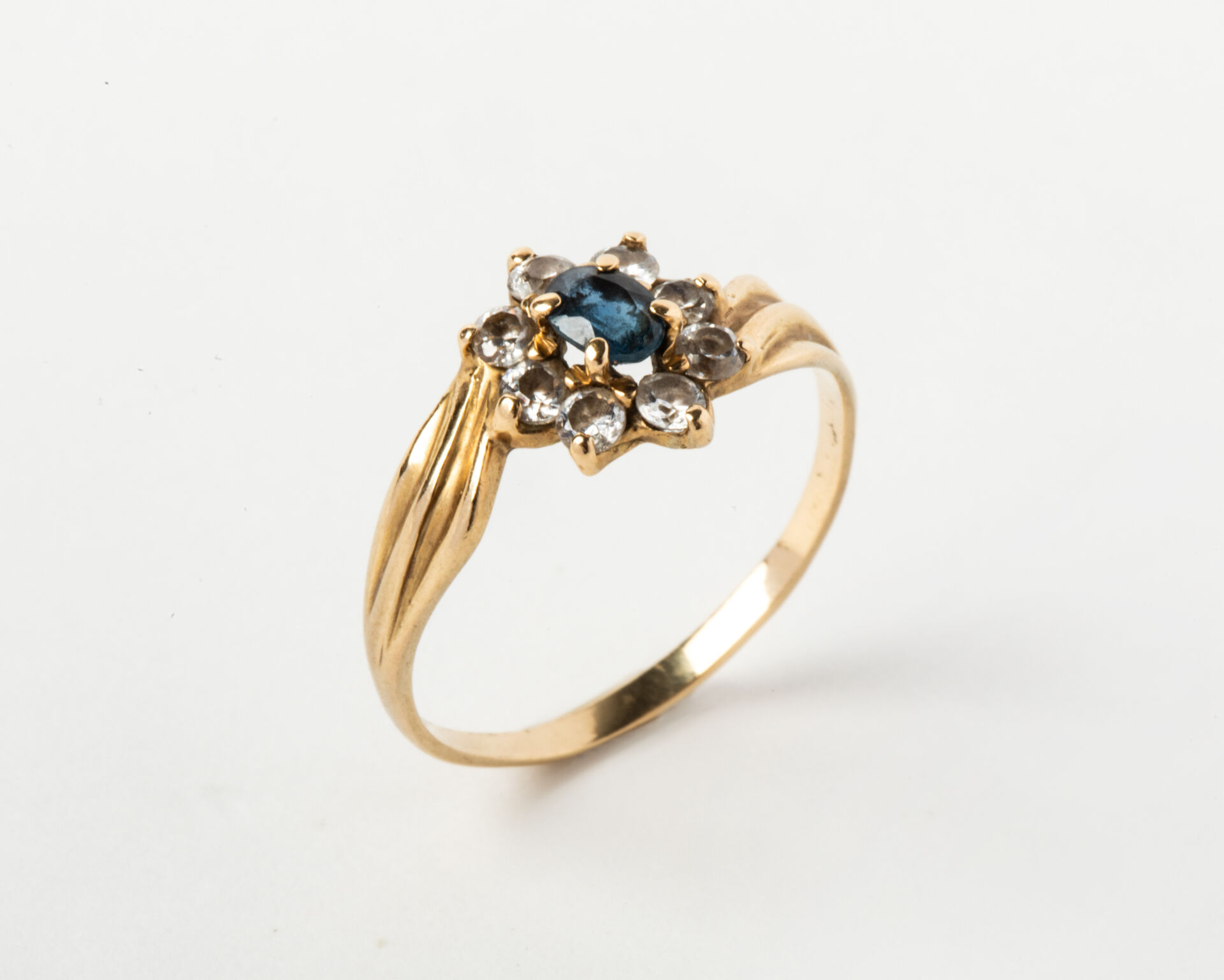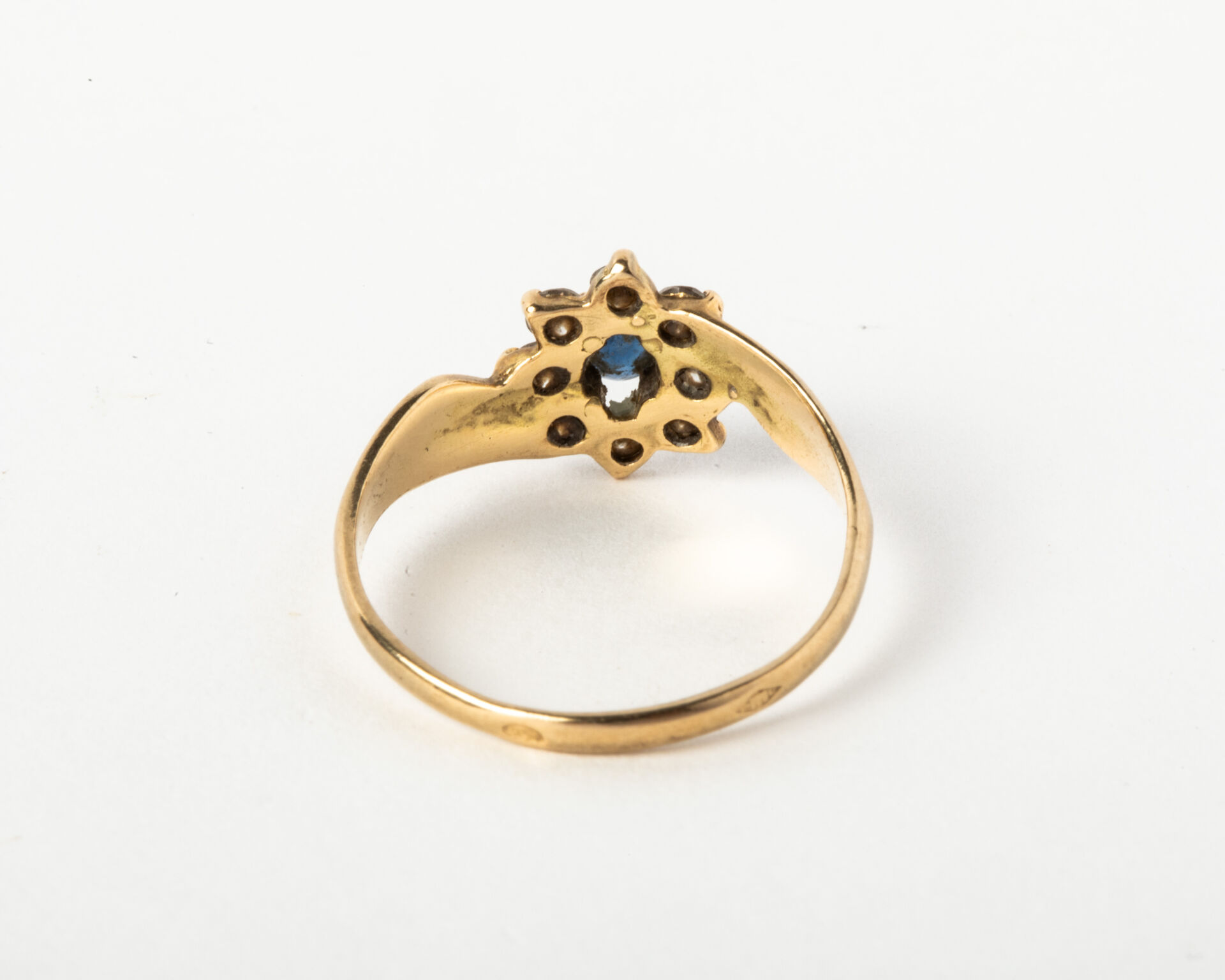 9 ESTIMATION: 60 / 80 € Bague marguerite en or 750 millième (18k), saphir et oxydes de zircunium. TDD 53. Poids brut : 2,1 g