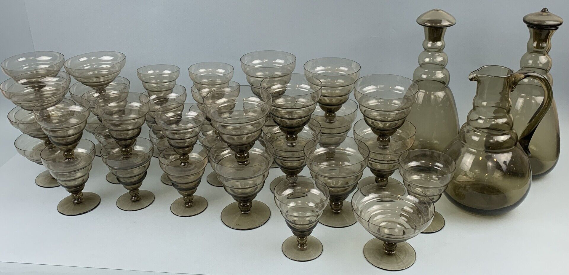 DAUM Nancy – Partie de service en verre fumé comprenant 53 pièces :