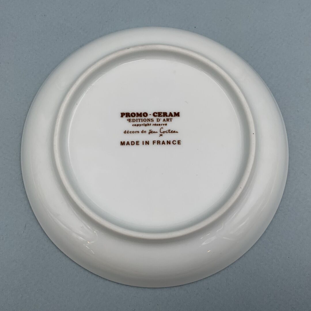152 RÉSULTAT: 130 € ESTIMATION: 20 / 30 € PROMO CERAM, Edition d’Art Vide poche en porcelaine, décor d’après Jean Cocteau D : 13.5 cm