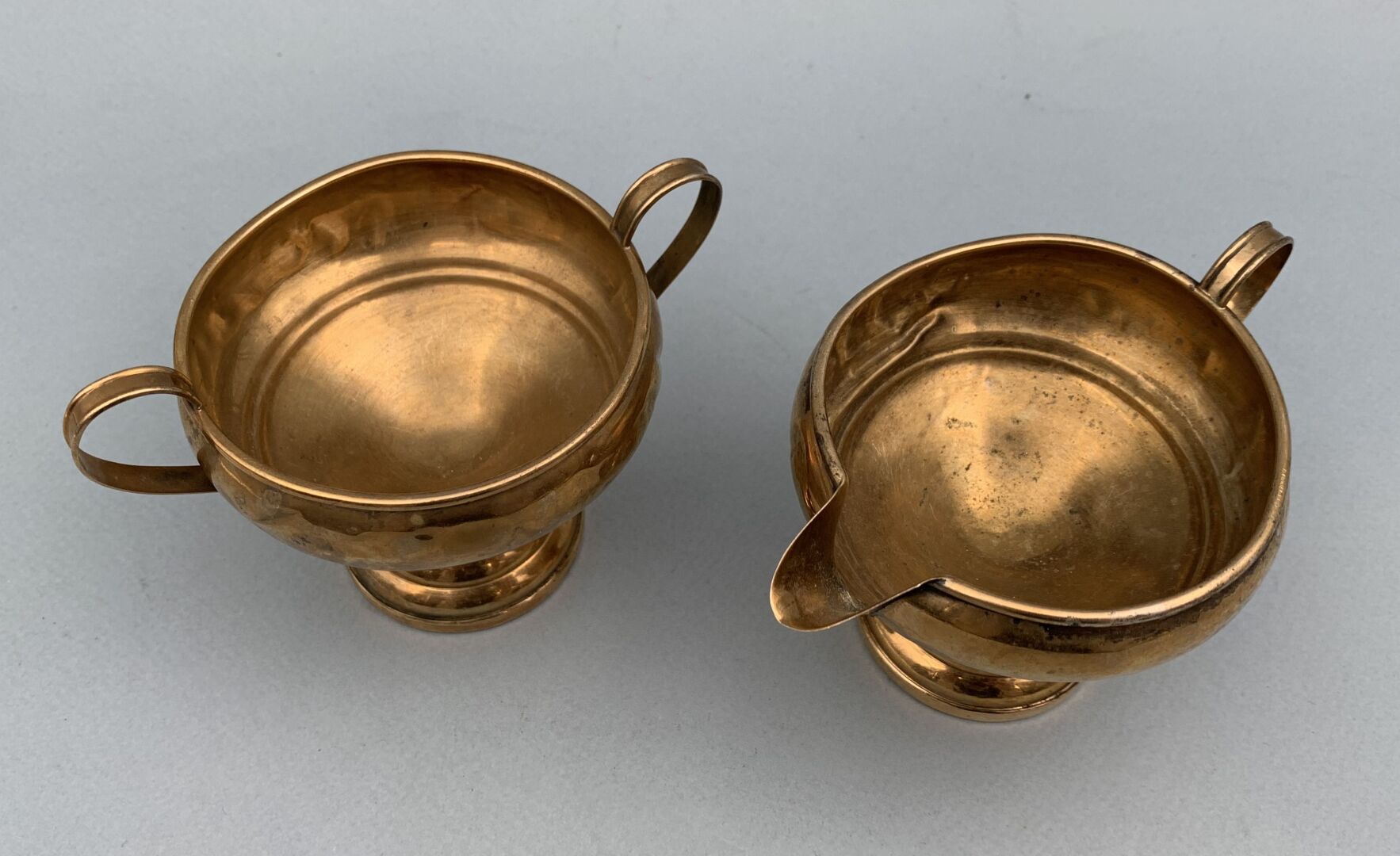 50 RÉSULTAT: 90 € ESTIMATION: 60 / 80 € Coupe sur talon et verseuse en vermeil, poinçon anglais Poids brut : 215 g