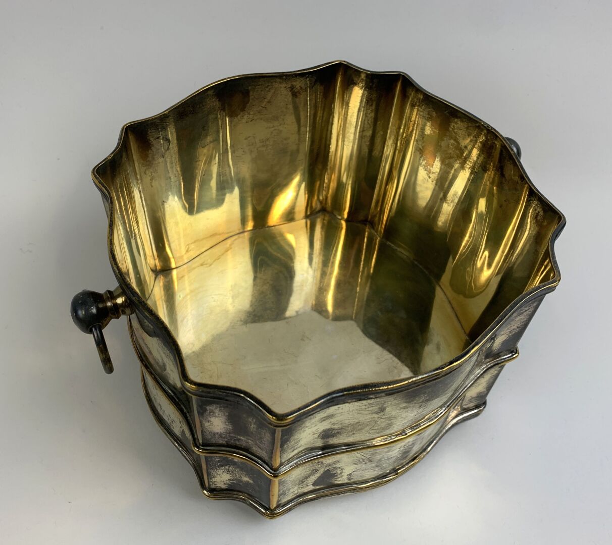 Jardinière en métal argenté de forme chantournée à deux anses reposant sur quatre pieds boule