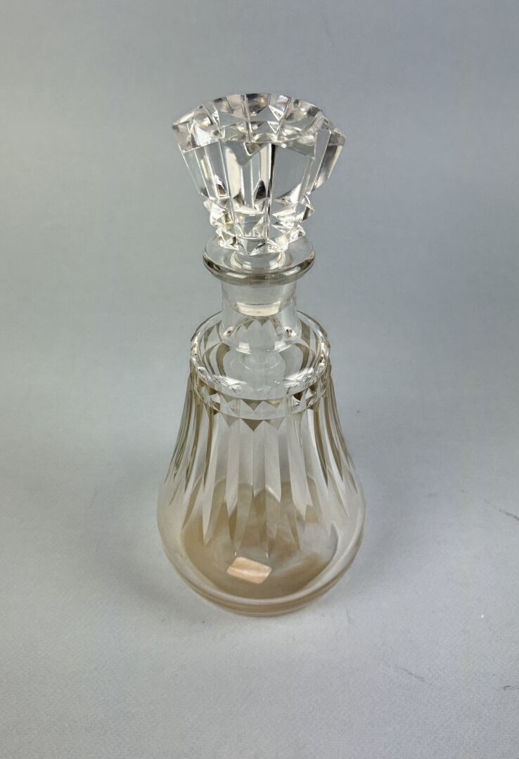 188 RÉSULTAT: 30 € ESTIMATION: 30 / 50 € BACCARAT Carafe en cristal taillé avec un haut bouchon en cristal taillé au modèle H : 26.5 cm