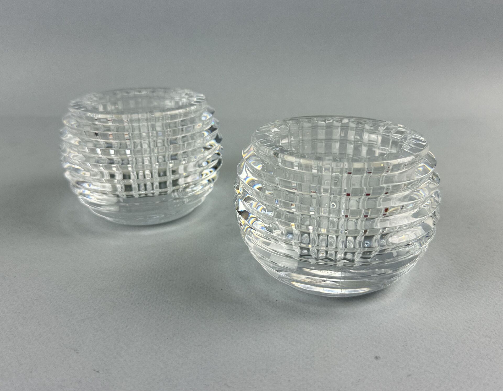 195 RÉSULTAT: 250 € ESTIMATION: 250 / 300 € BACCARAT Modèle Eye – Deux photophores en cristal taillé annelé Etat neuf, dans leur boite d’origine H : 7 – D : 10 cm