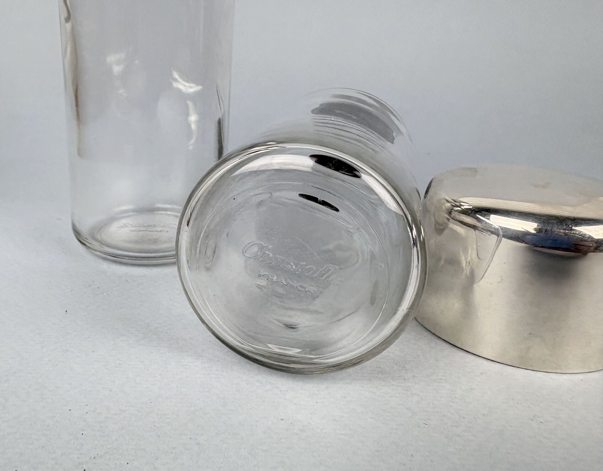 134 ESTIMATION: 60 / 80 € CHRISTOFLE Huilier vinaigrier en verre et métal argenté Travail vers 1970 H : 15 cm