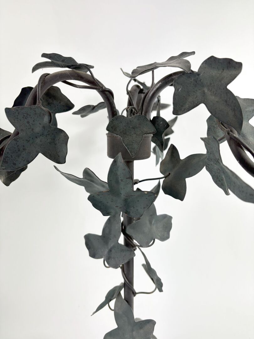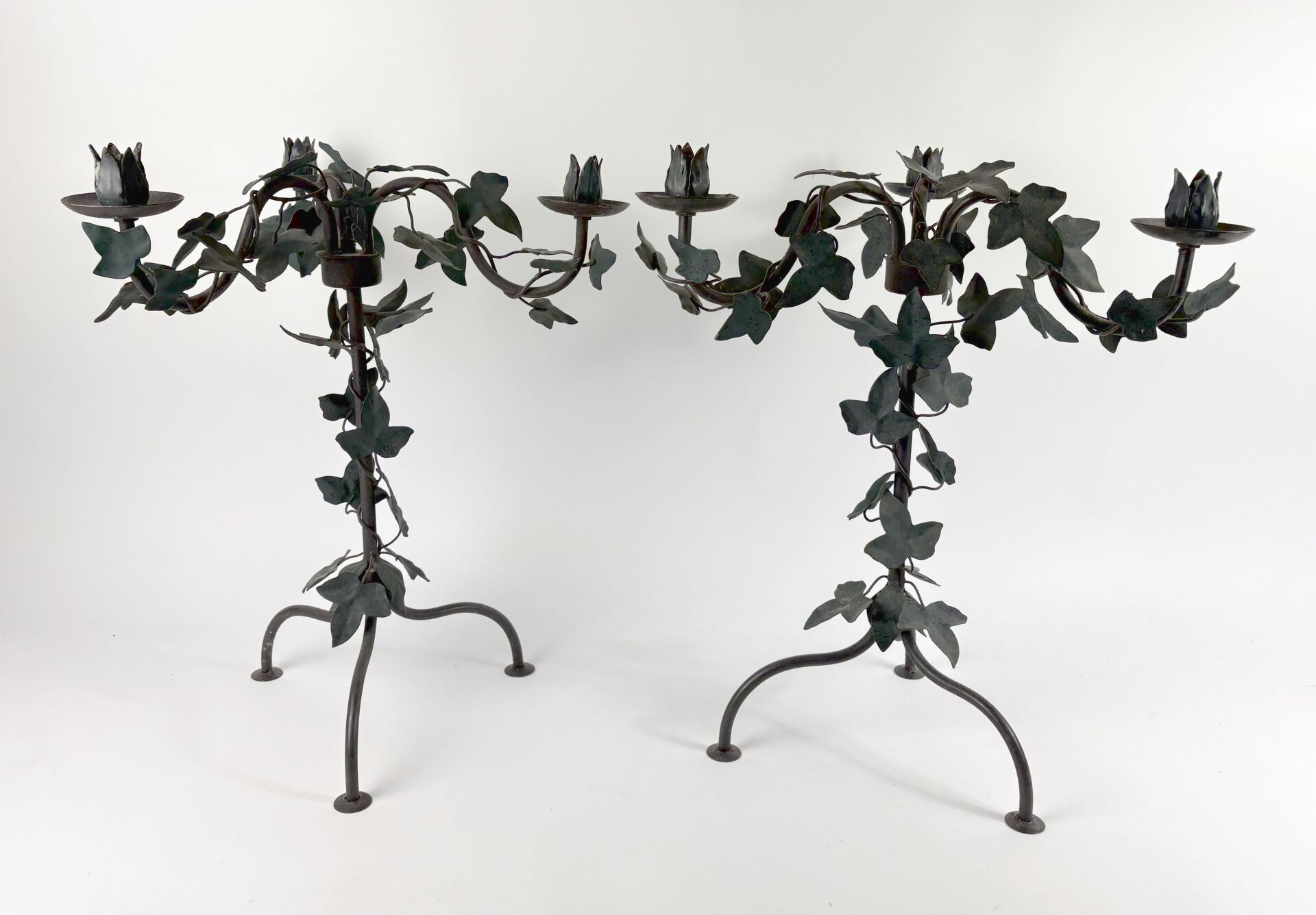 339 ESTIMATION: 60 / 80 € CHAUMETTE Paire de chandeliers à trois bras de lumière en fer forgé à décor de lierre H : 52 cm