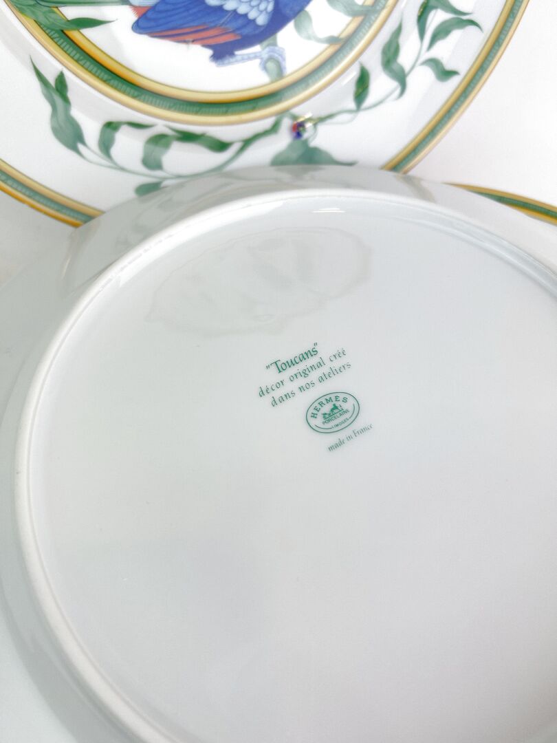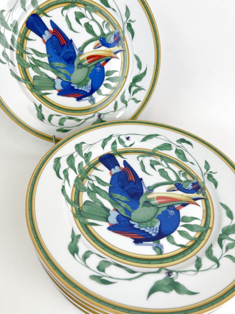 374 ESTIMATION: 1000 / 1500 € HERMES, Paris Modèle Toucan – Suite de 6 assiettes américaines en porcelaine D : 27 cm