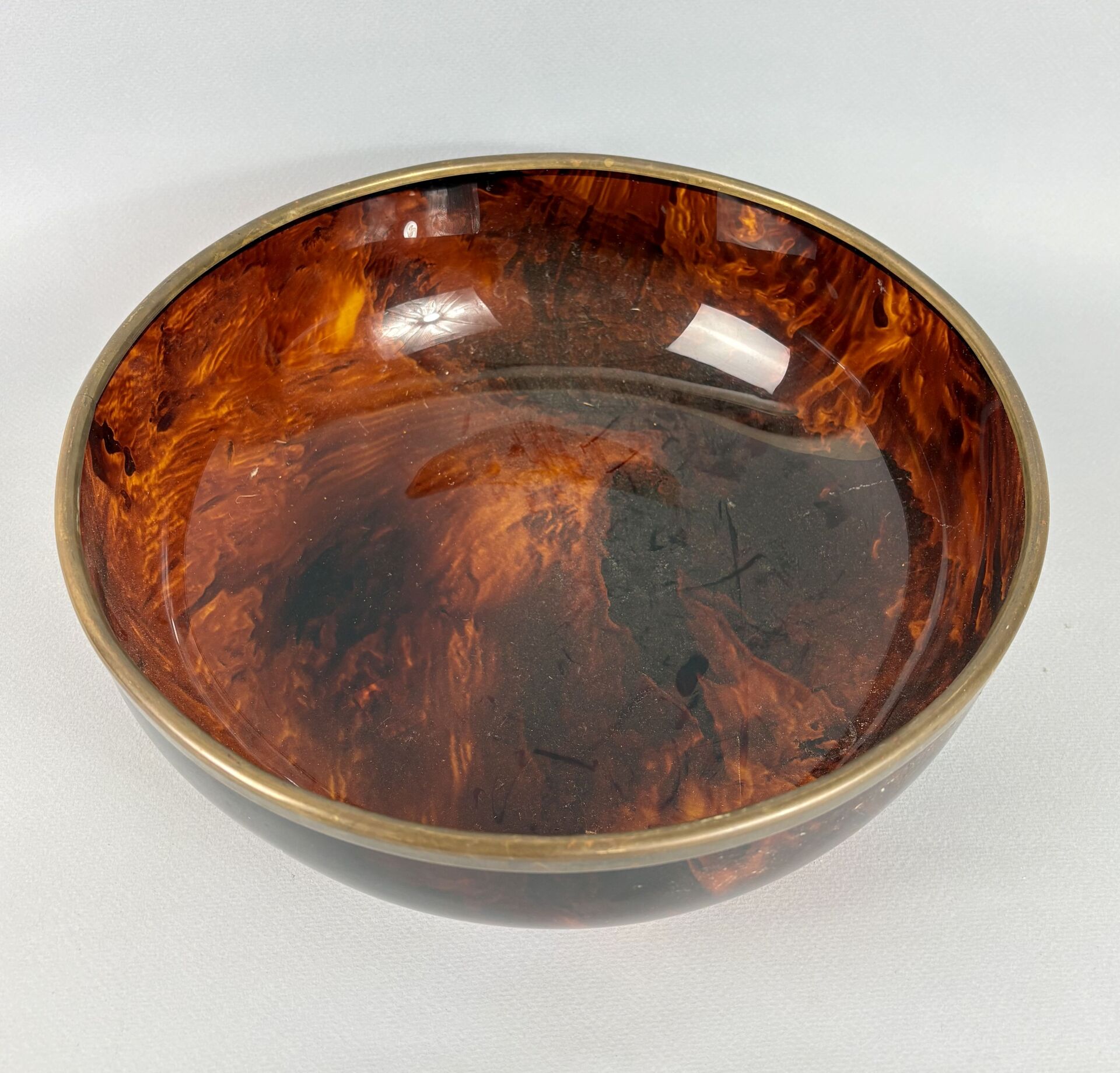 380 ESTIMATION: 30 / 50 € Christian DIOR, dans le gout de Grande corbeille en plexiglas à l’imitation de l’écaille cerclée de métal doré D : 28.7 cm