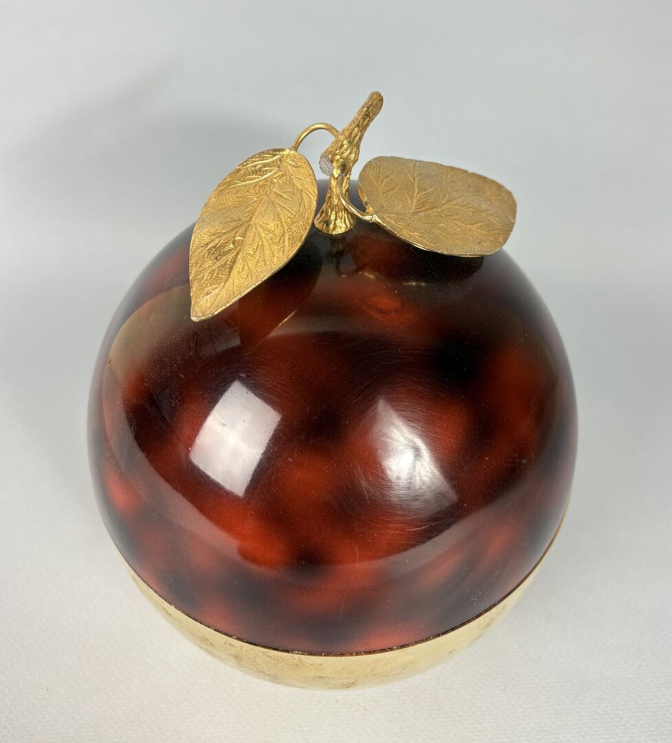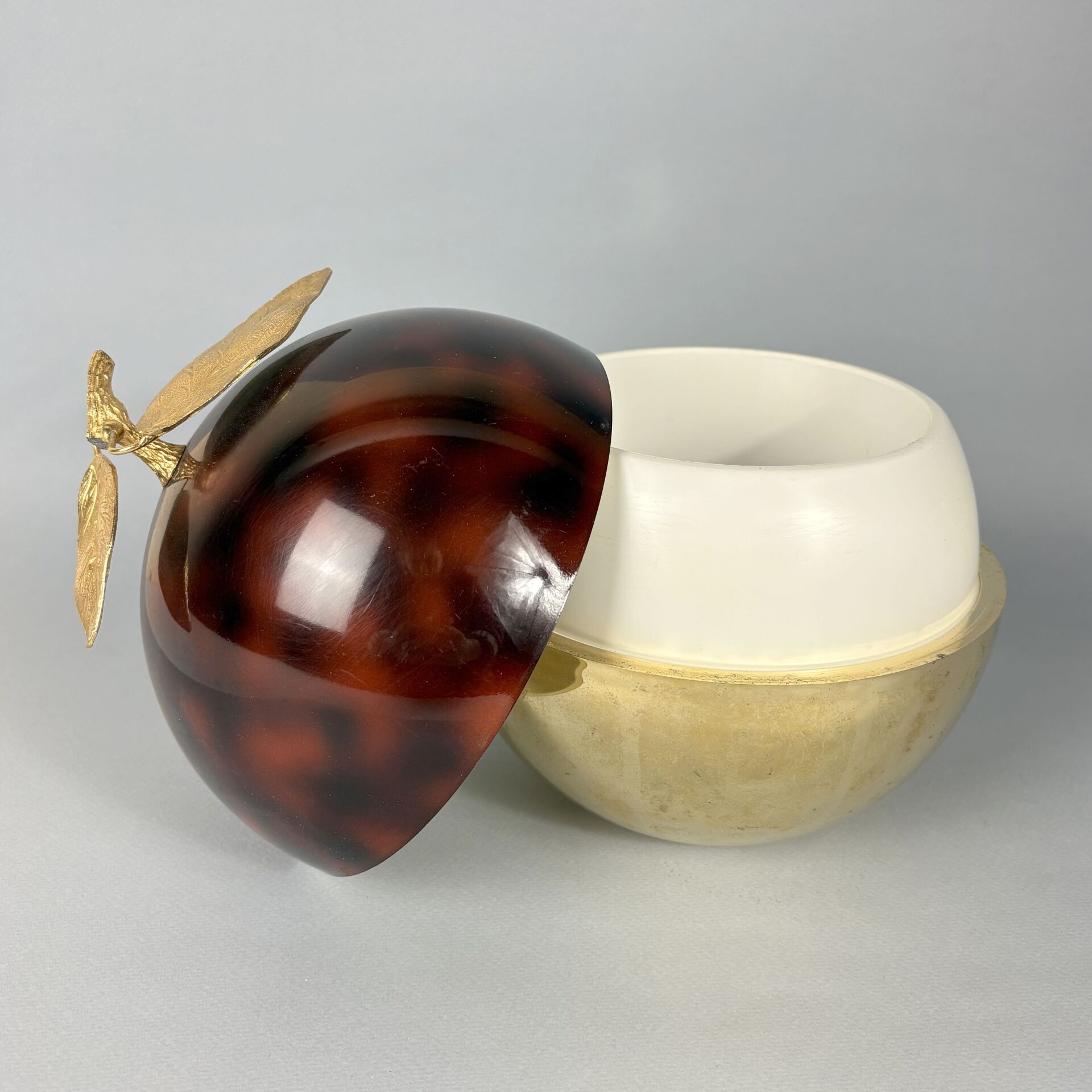 Seau à glaçons en plastique à l’imitation du laiton et de l’écaille formant pomme, le frêtel en métal doré figurant une feuille