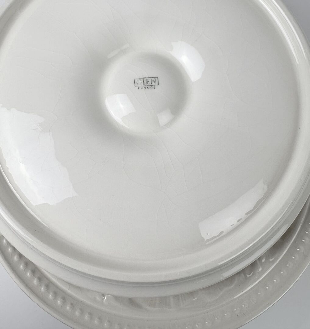 Suite de sept assiettes à huitres en faïence blanche