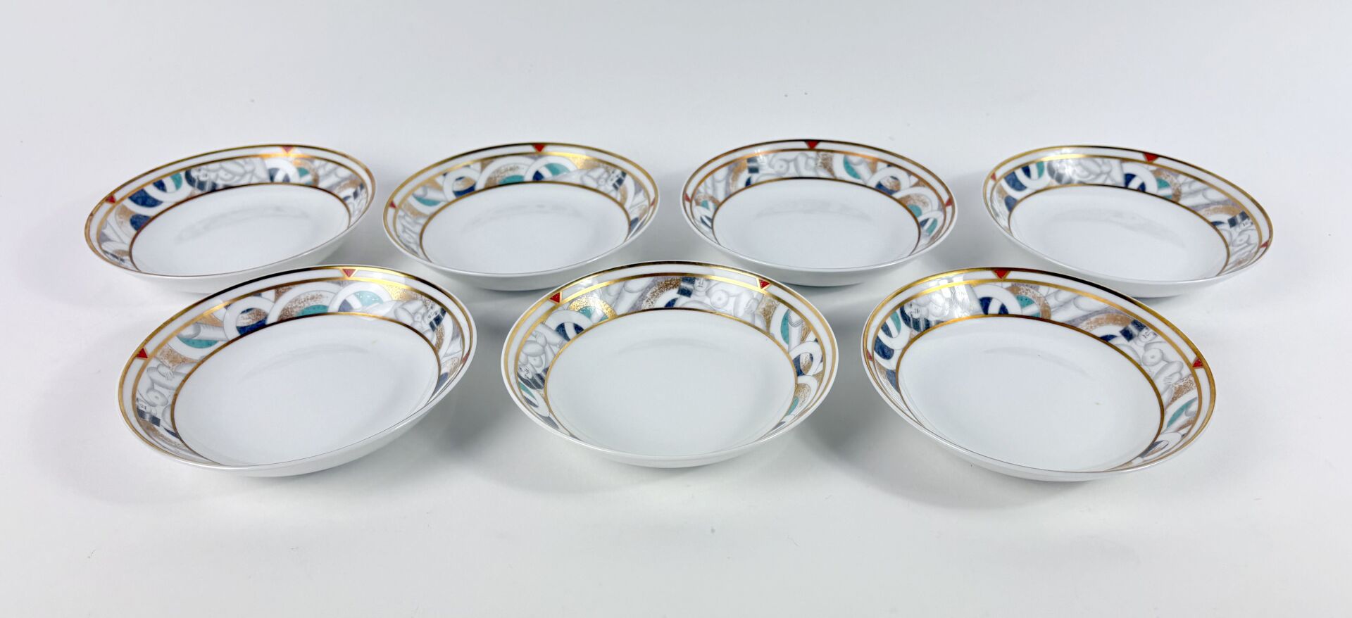 Modèle Paris, densité des granits, raffinement des ors poudrés – Suite de sept coupelles en porcelaine