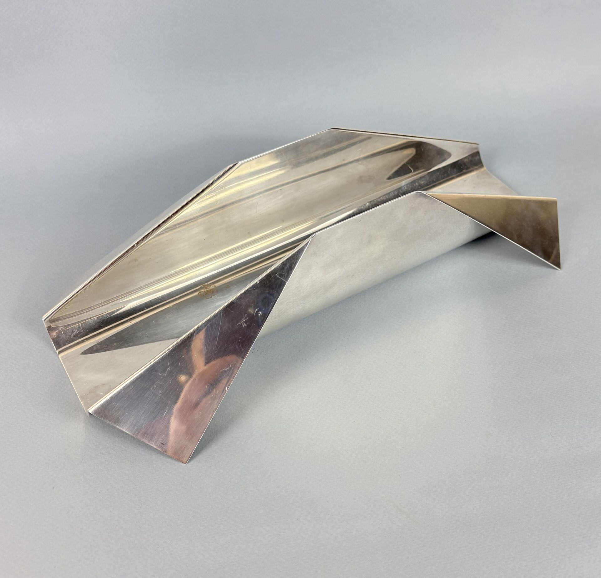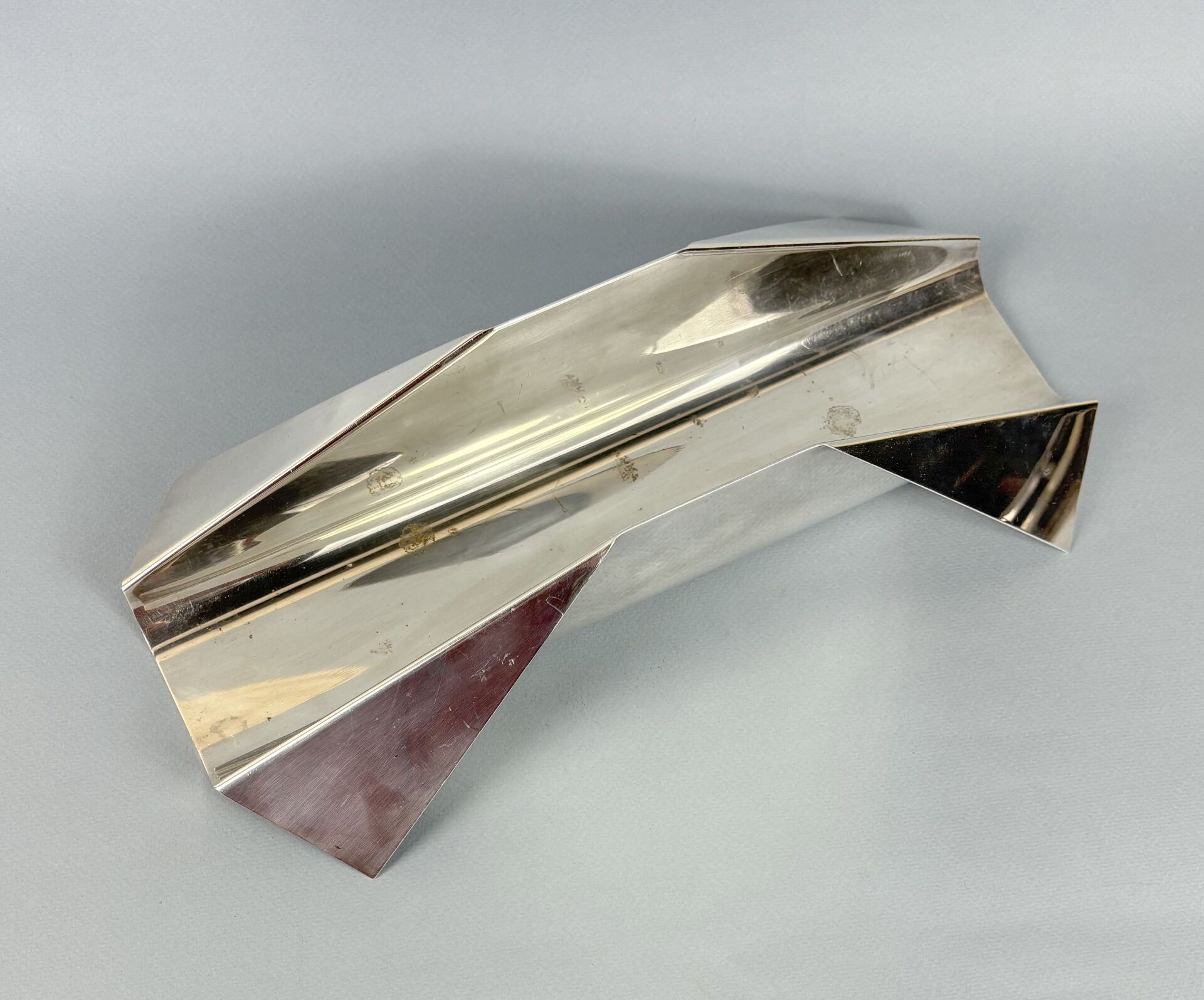 490 ESTIMATION: 100 / 150 € LINO SABATTINI (1925-2016) Porte gressins en métal argenté figurant un origami H : 8 – L : 35.5 – P : 17 cm