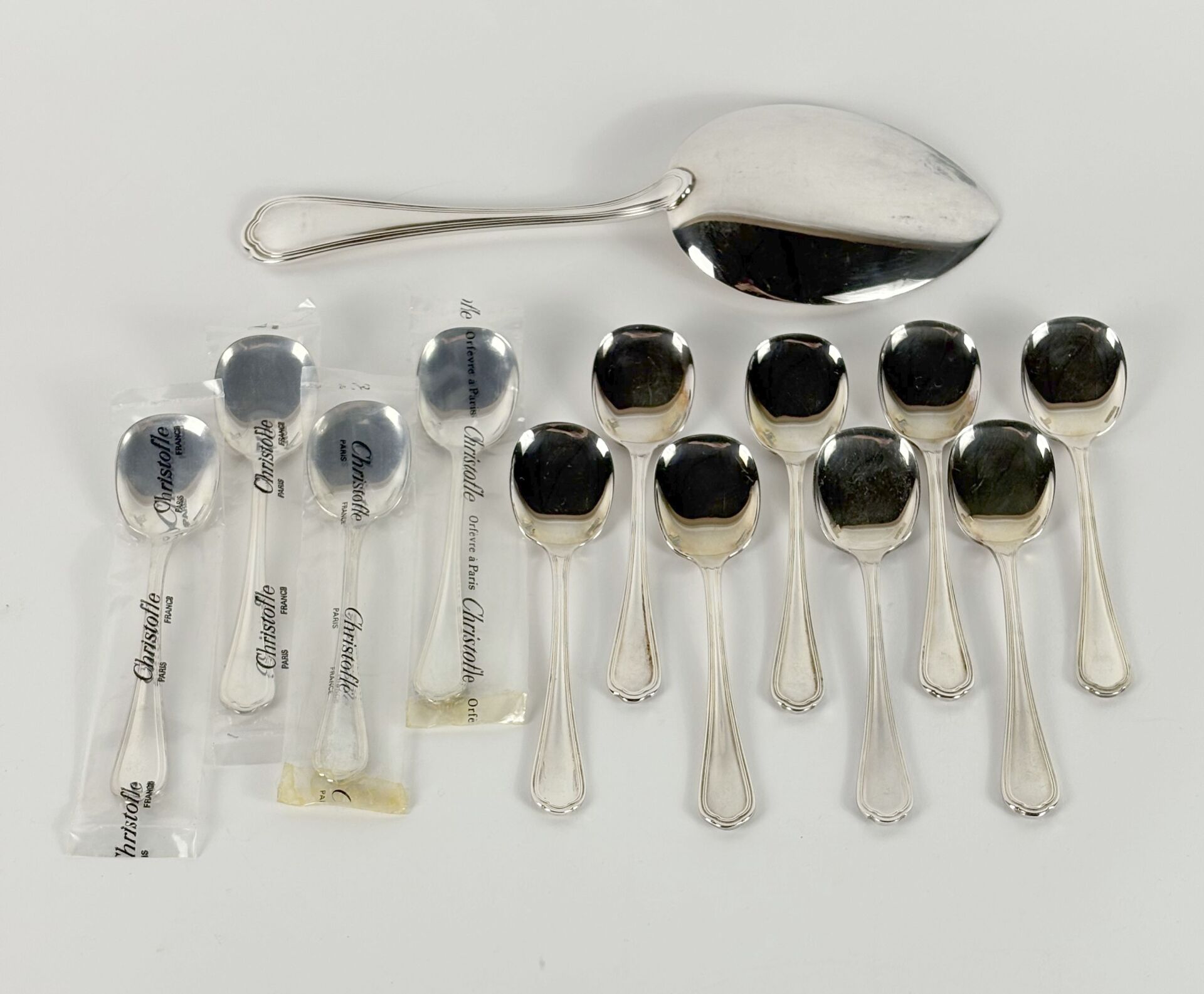 86 ESTIMATION: 100 / 120 € CHRISTOFLE Modèle Spatour – Suite de douze cuillères à glace et une pelle à glace