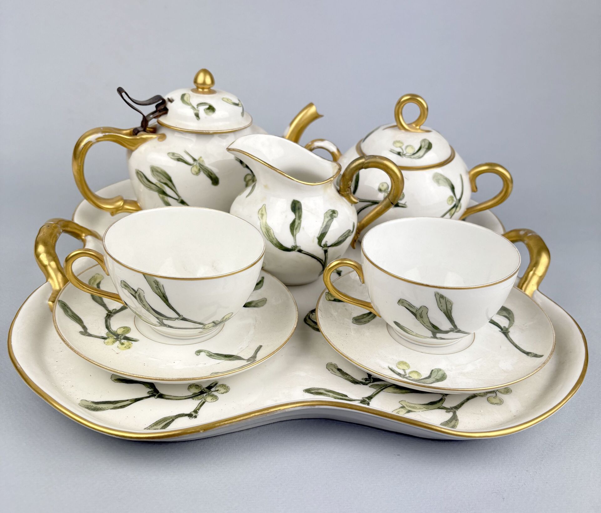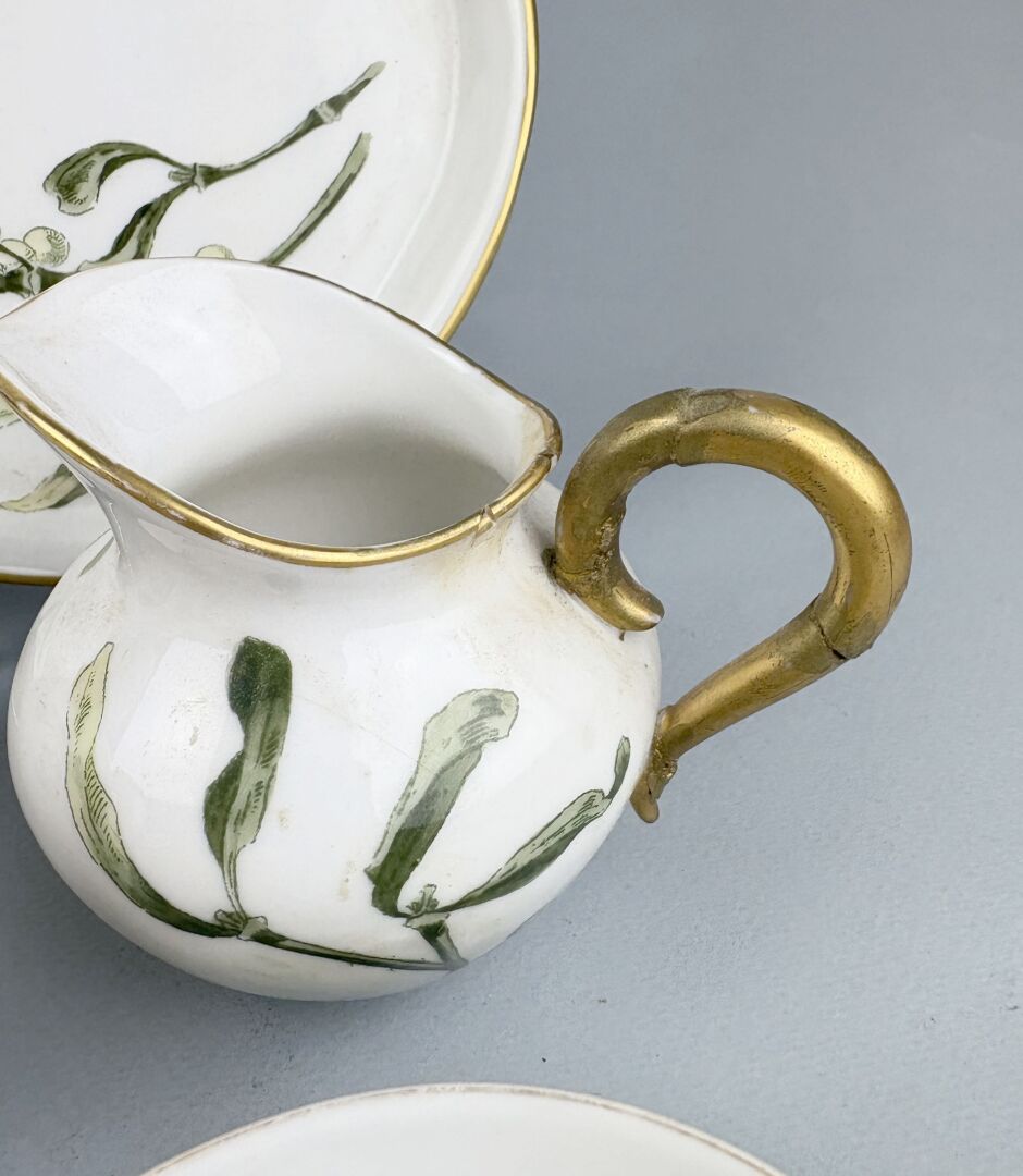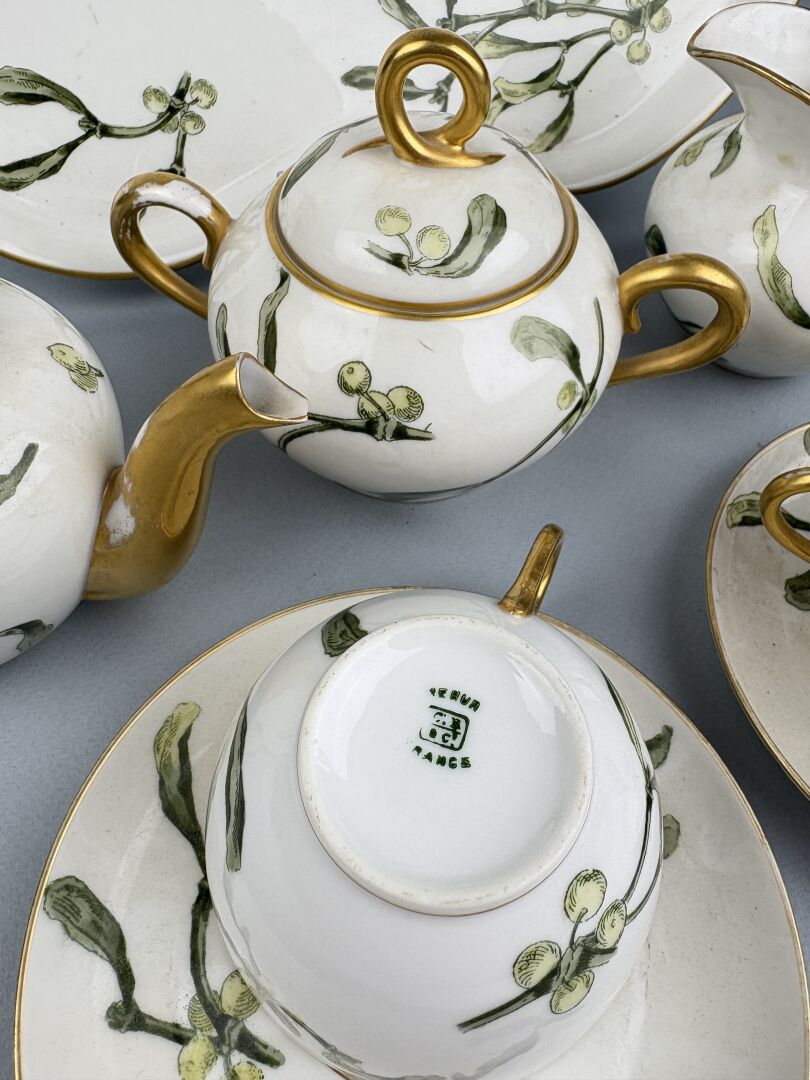 Service tête à tête en porcelaine blanche à décor de branches de gui comprenant :