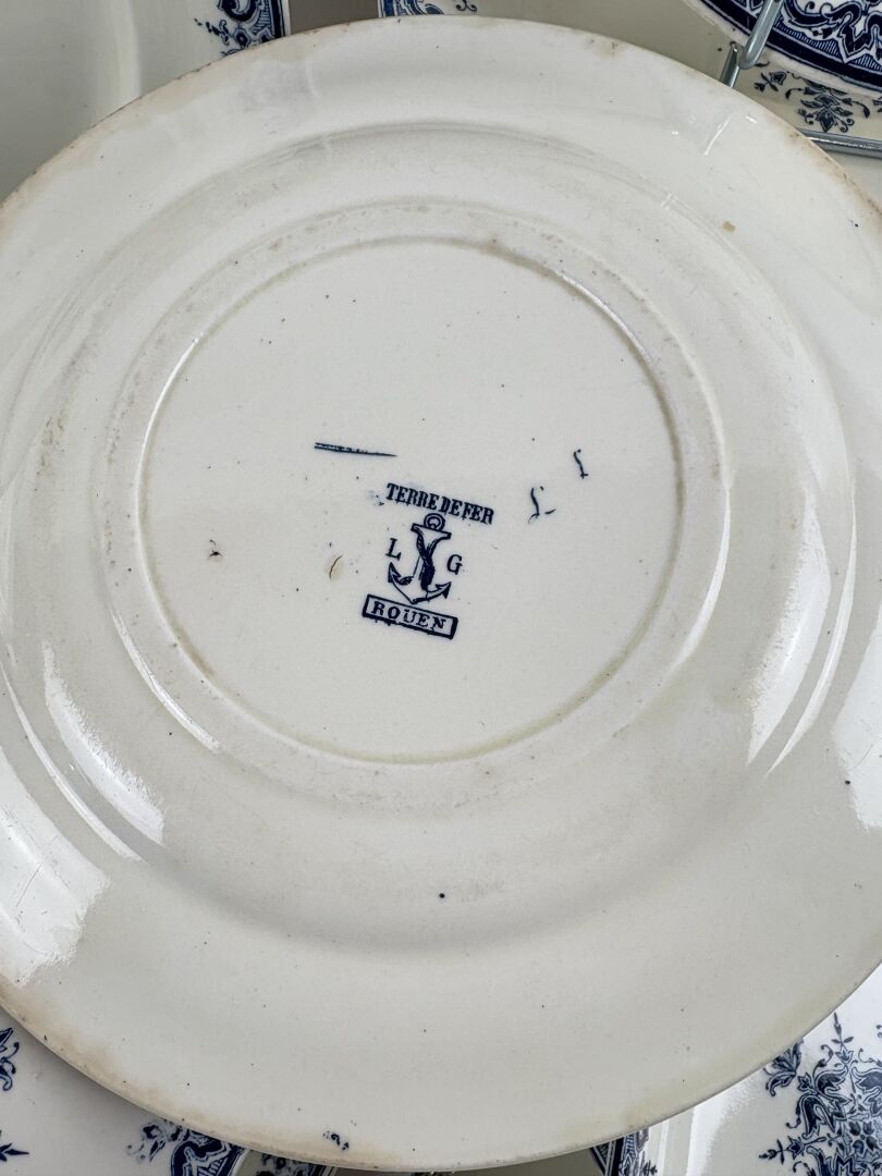 Modèle Rouen – Service en terre de fer à décor de lambrequins et feuillages bleus comprenant :