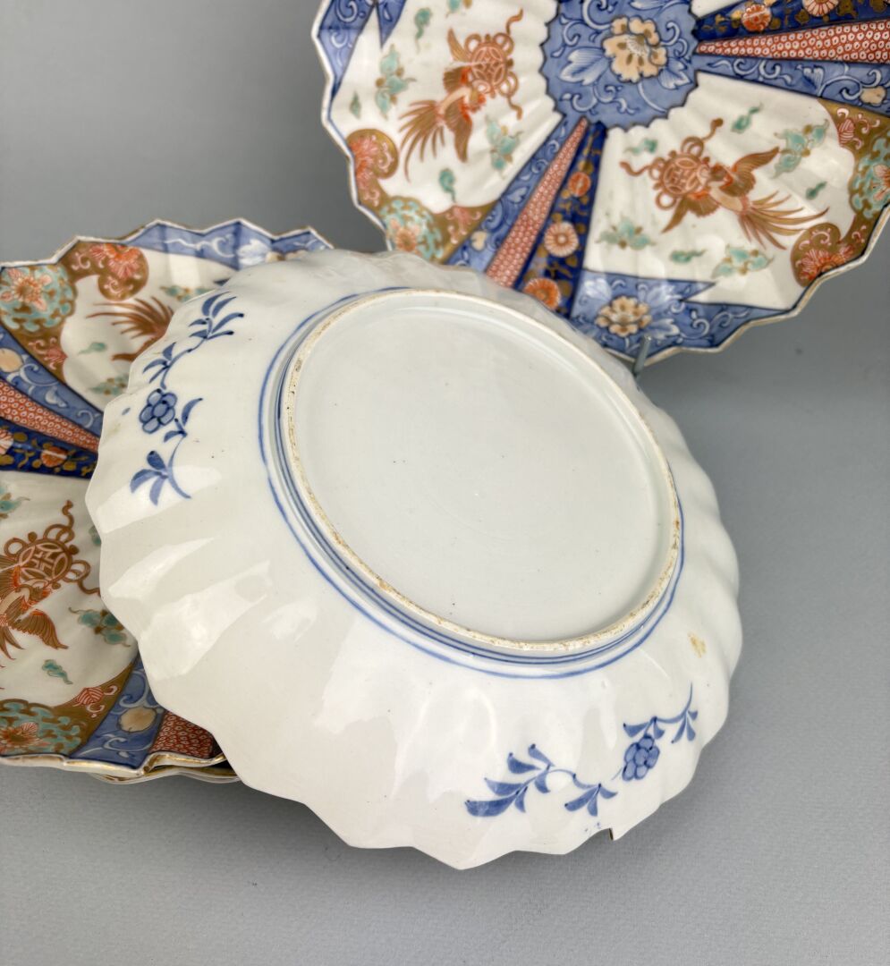 190 ESTIMATION: 60 / 80 € JAPON, XIX° Suite de 5 assiettes en porcelaine Imari figurant des éventails Légère altération à la dorure D : 22.5 cm