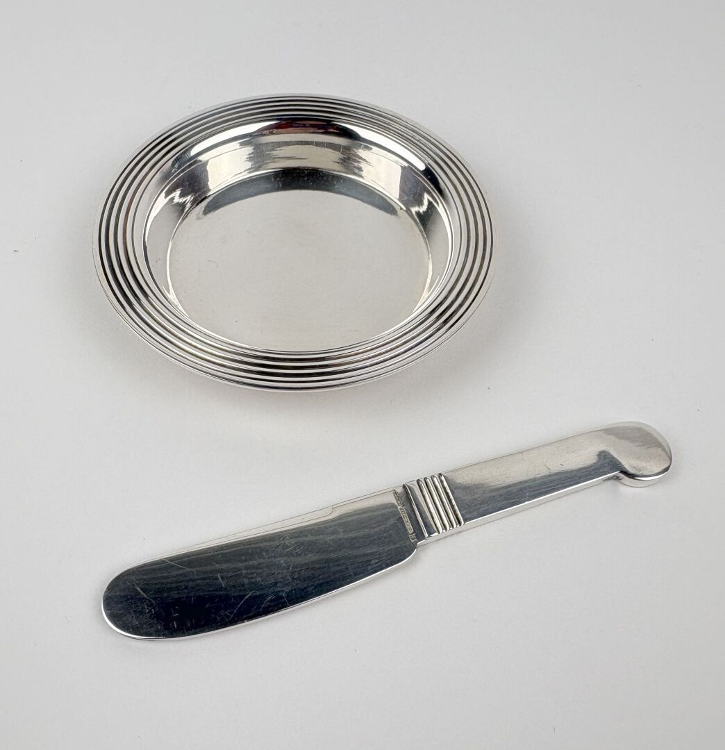 209 ESTIMATION: 40 / 60 € LUC LANEL (1893-1965) pour CHRISTOFLE Modèle Ondulations – Beurrier individuel en métal argenté accompagné de son couteau