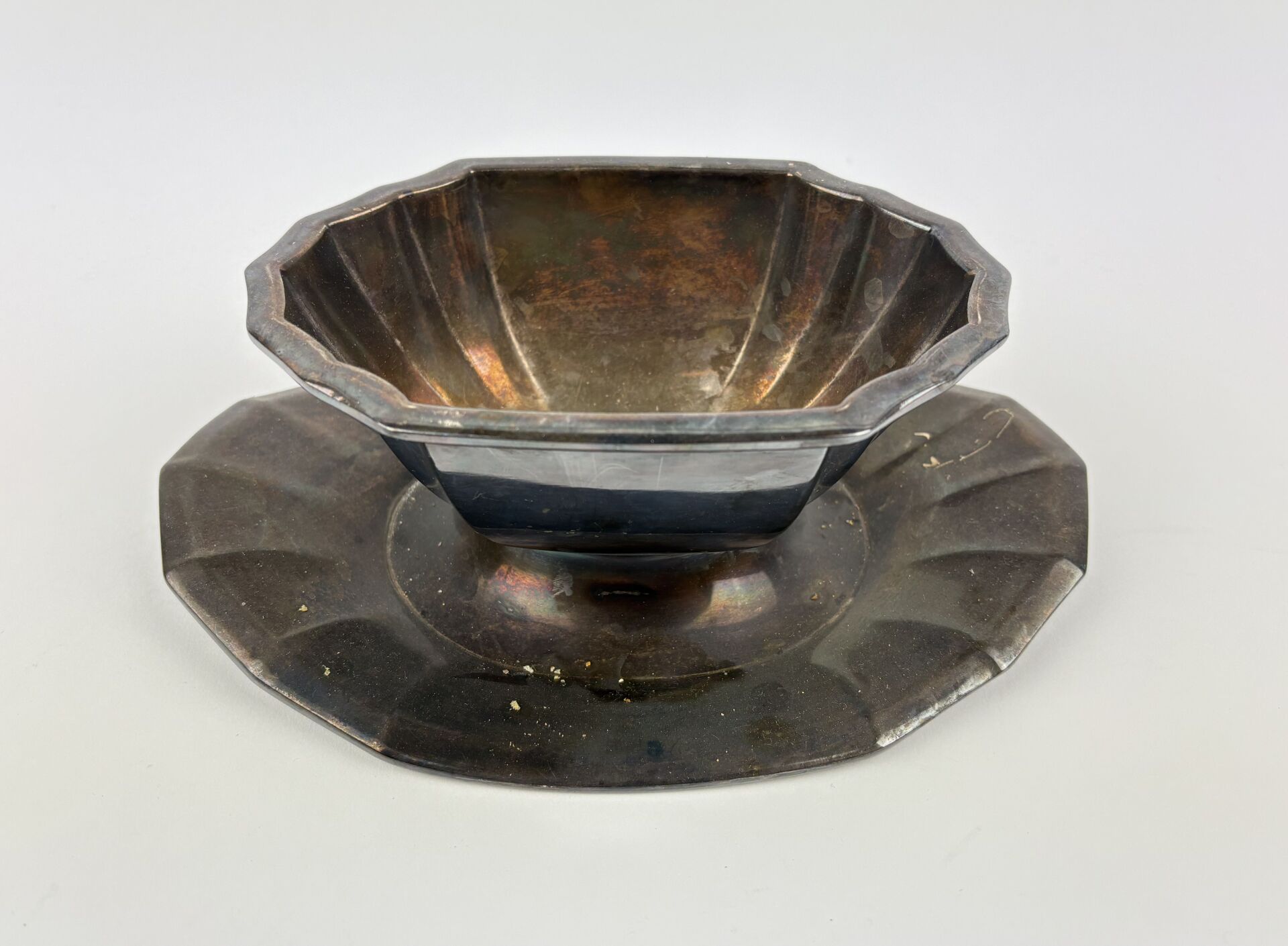 212 ESTIMATION: 30 / 50 € GALLIA Saucière à dormant fixe en métal argenté à décor côtelé Travail de style Art Déco
