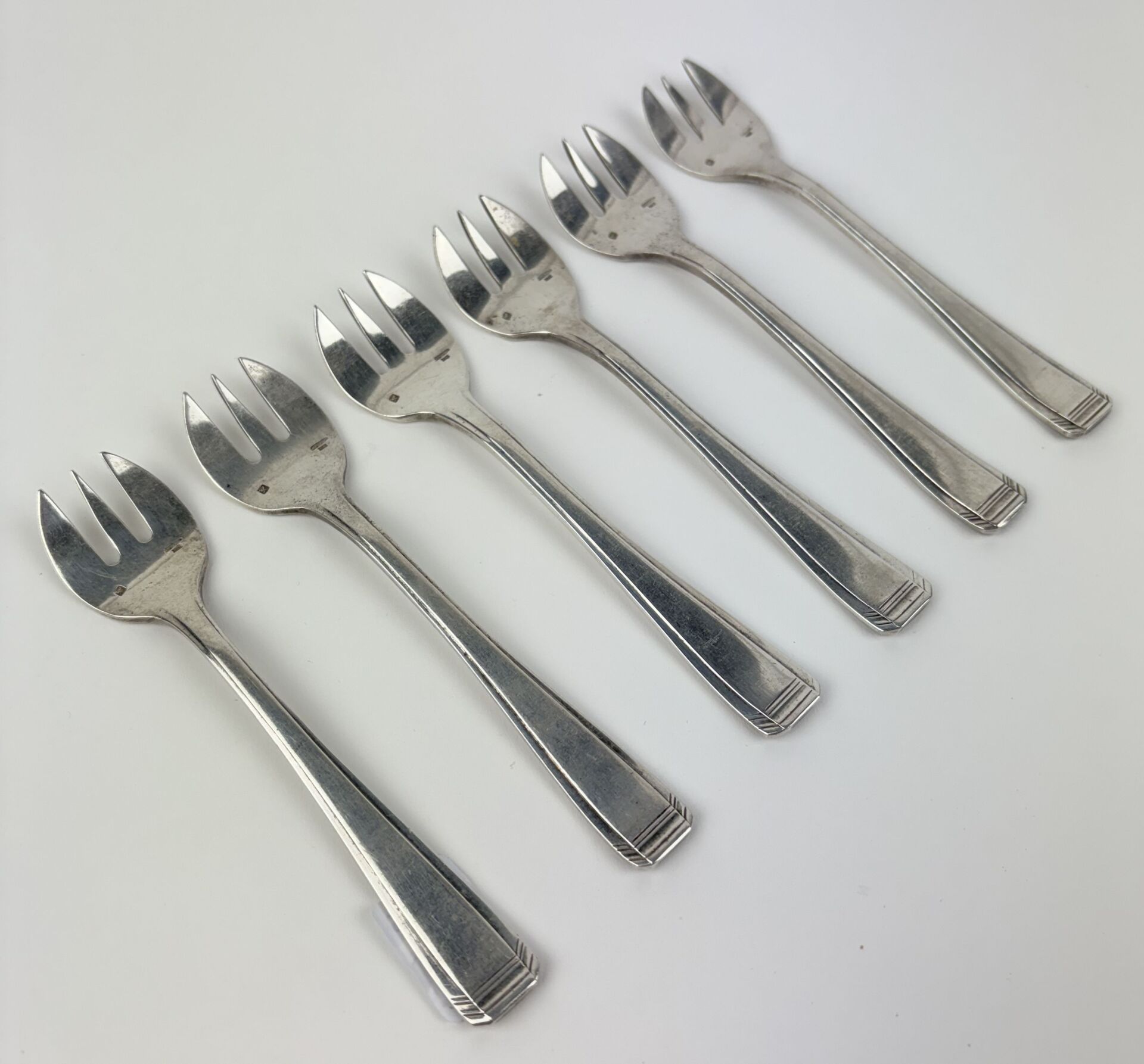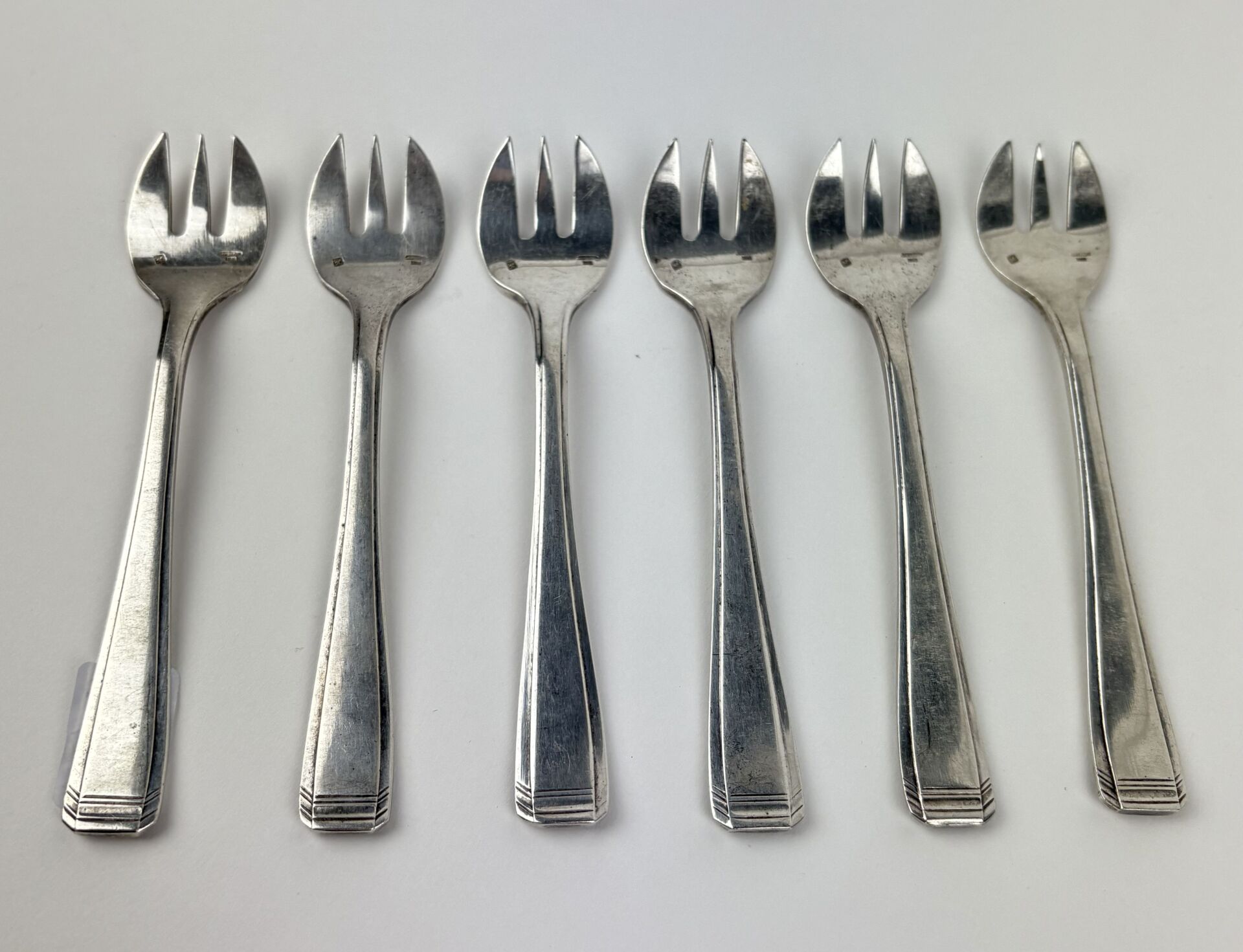 219 ESTIMATION: 20 / 30 € ERCUIS Suite de six fourchettes à huitre en métal argenté Travail Art Déco vers 1930