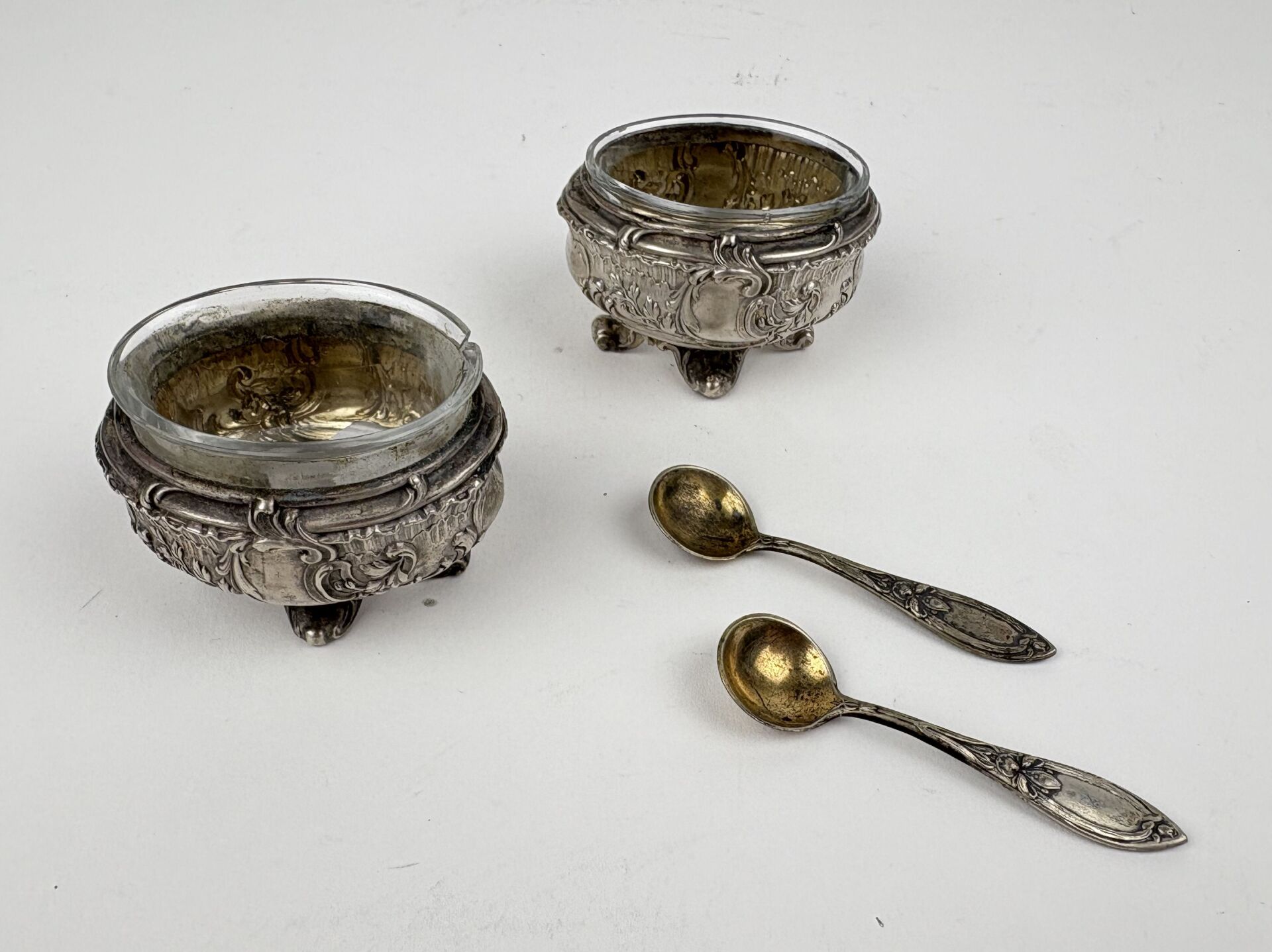 Paire de salerons en argent, poinçon minerve à décor rocaille