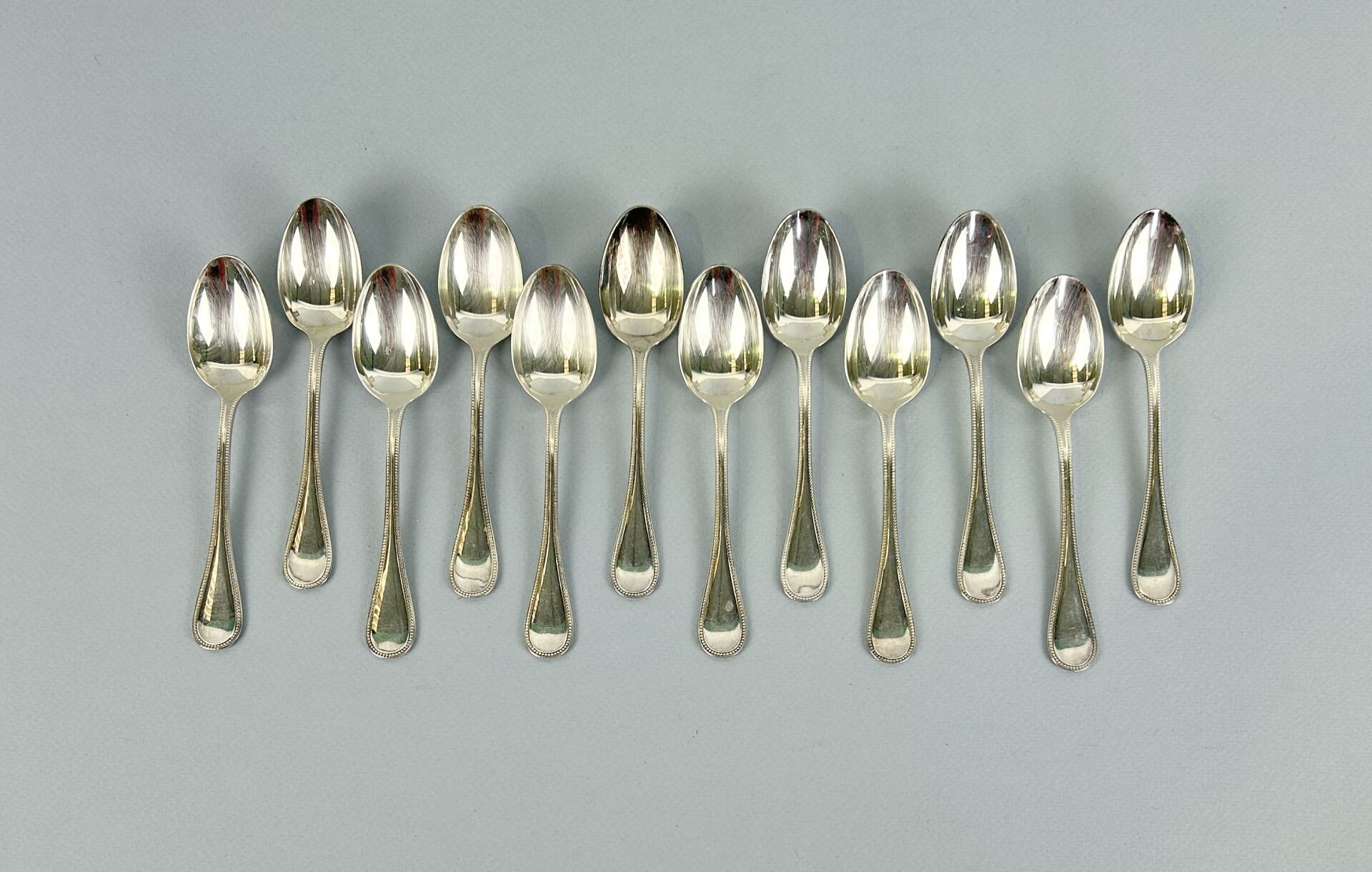 39 RÉSULTAT: 210 € ESTIMATION: 120 / 150 € CHRISTOFLE Modèle Perles – Suite de 12 cuillères à dessert en métal argenté