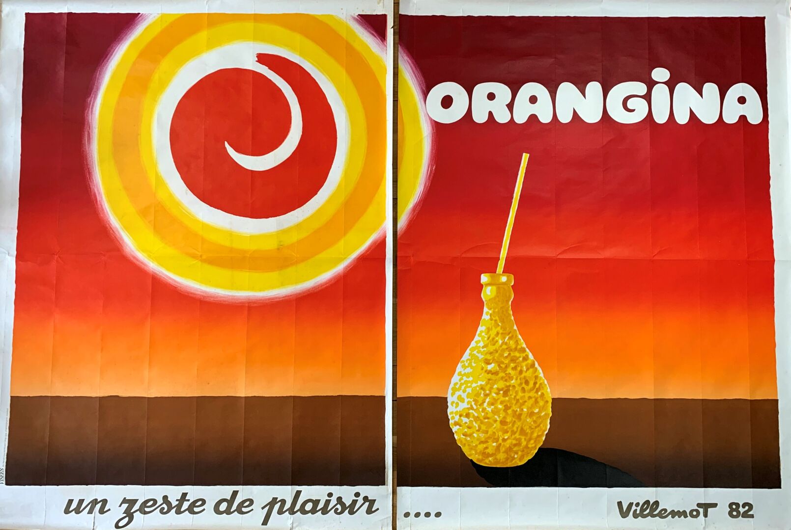 228 RÉSULTAT: 500 € ESTIMATION: 500 / 800 € BERNARD VILLEMOT Orangina vers 1982 Un zeste de plaisir Affiche en deux parties, piqures et petites déchirures 120 x 160 cm chacune