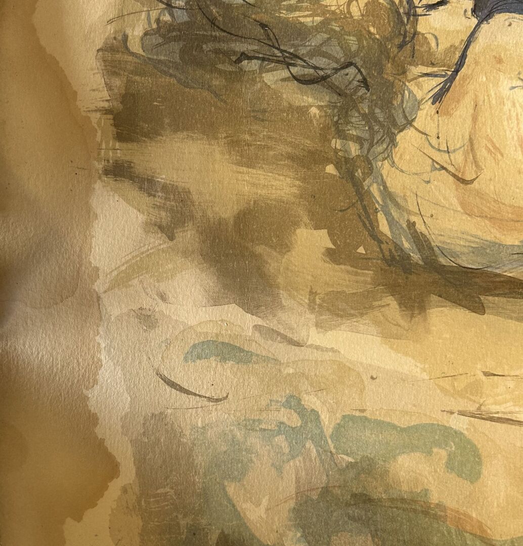 282 ESTIMATION: 20 / 30 € Jacques PECNARD (1922/2012) Étude d’homme et nu féminin Deux lithographies couleur, signés et numérotés 17/80, Piqures et trace d’humidité 47 x 62 cm