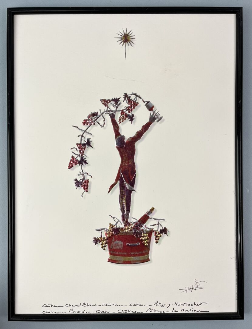 Affiche offset estampée pour « Château Cheval Blanc, Château Latour-Puligny-Montrachet, Château Branaire-Ducru – Château Pétrus-La Mouline »
