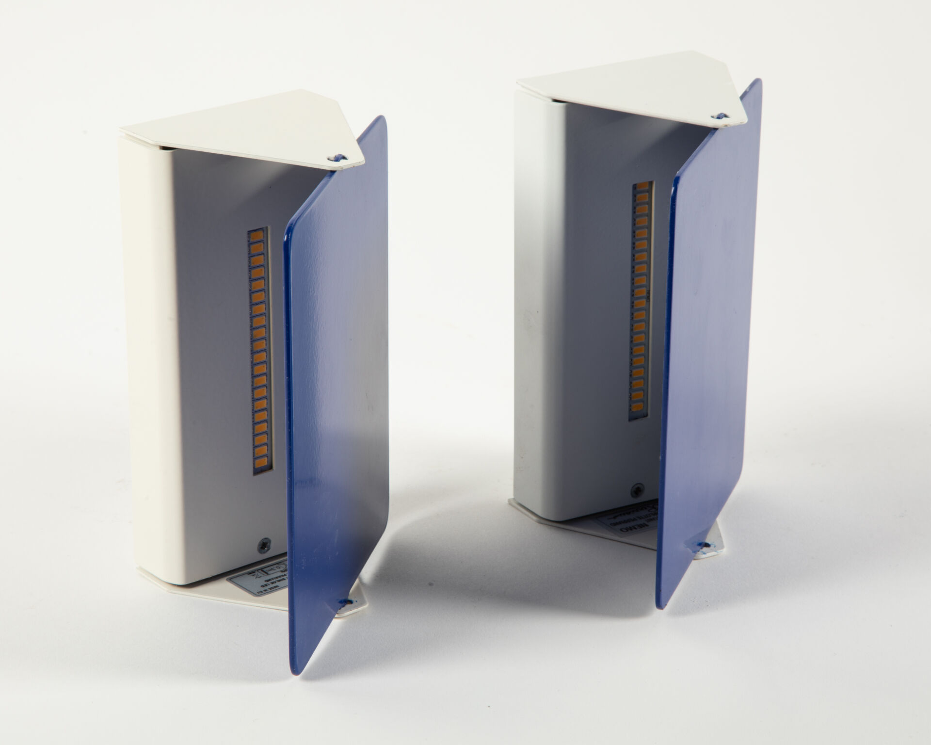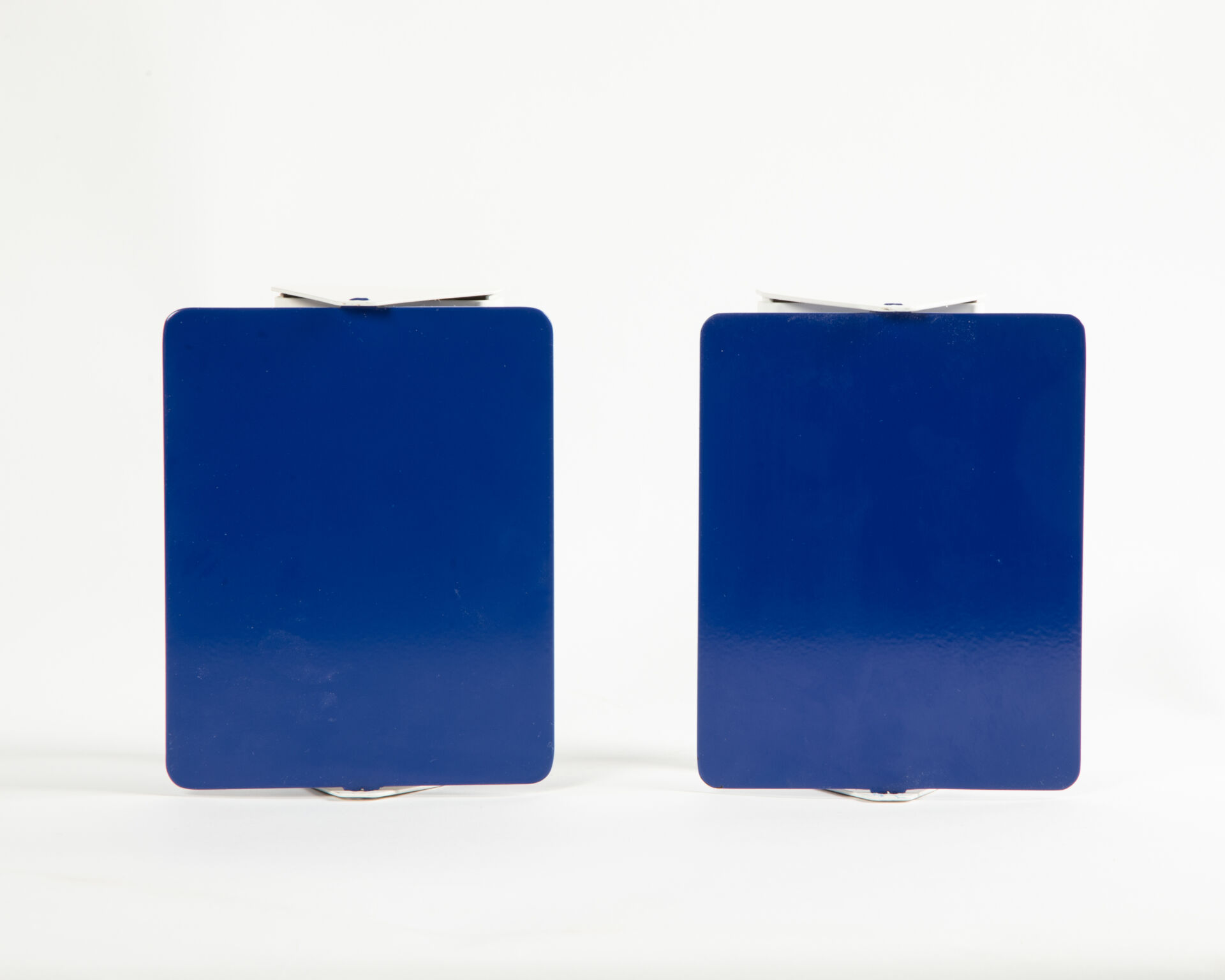 15 ESTIMATION: 80 / 150 € Charlotte PERRIAND (1903-1999) – NEMO Editeur Paire d’appliques modèle CP1 à volet orientable, la partie supérieure en métal laqué bleu H : 16 cm