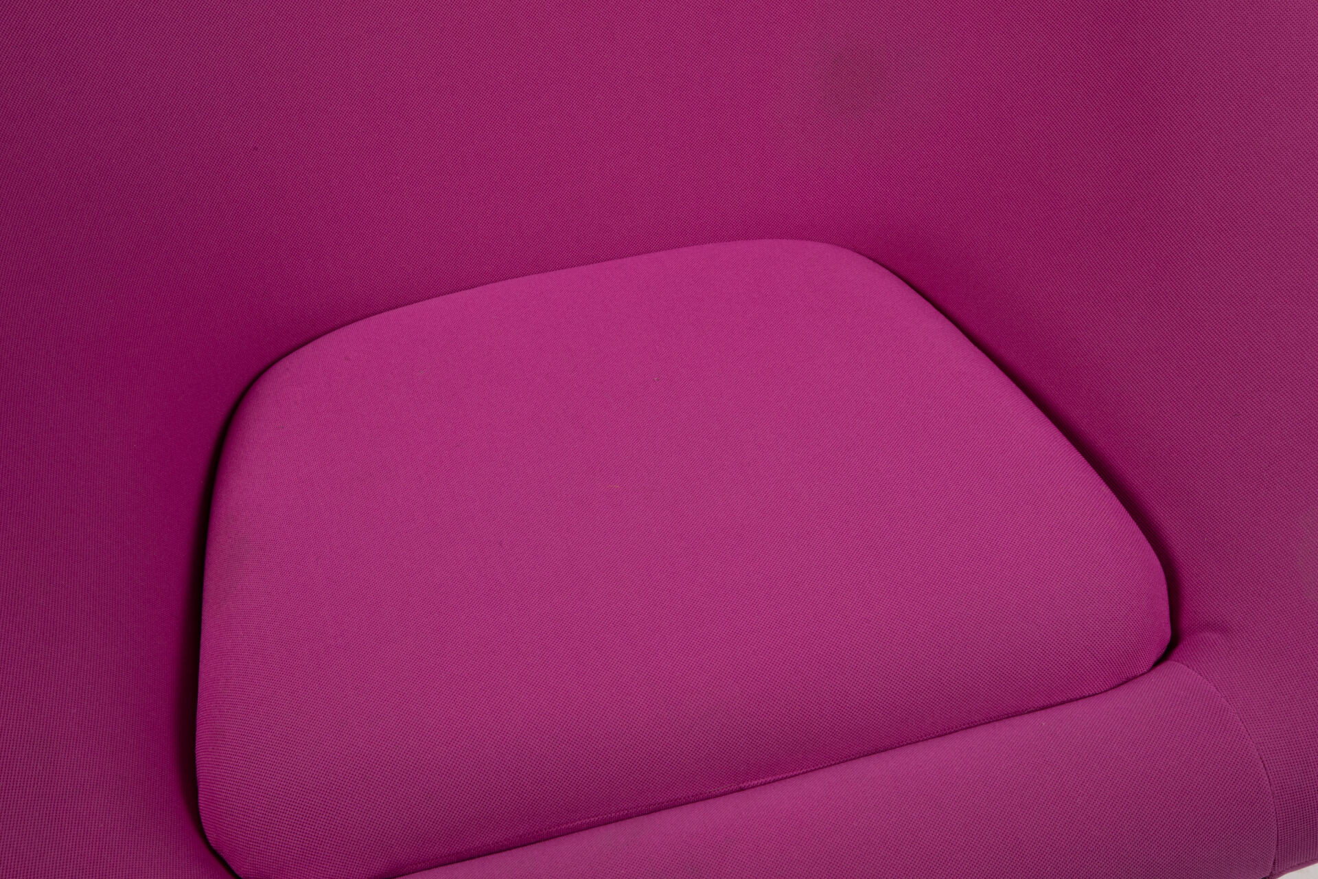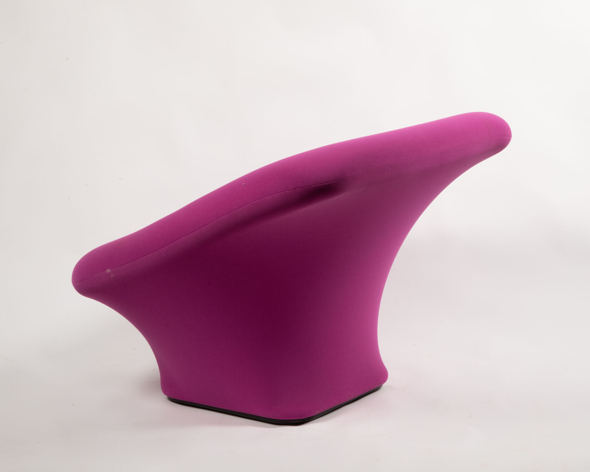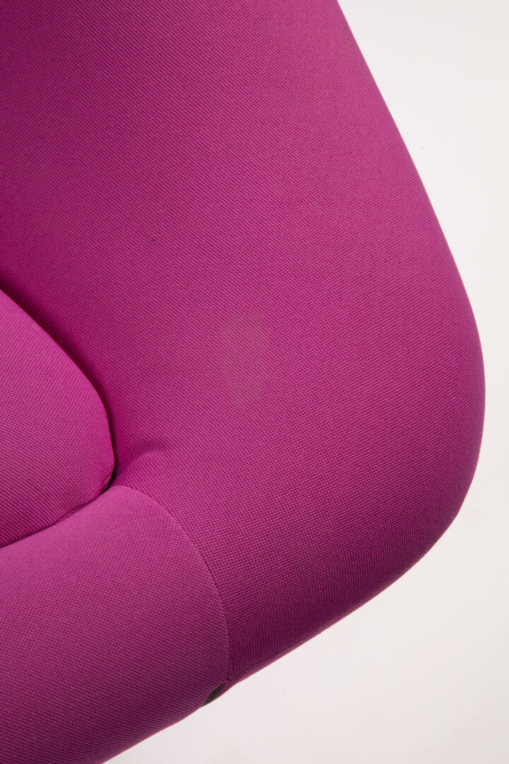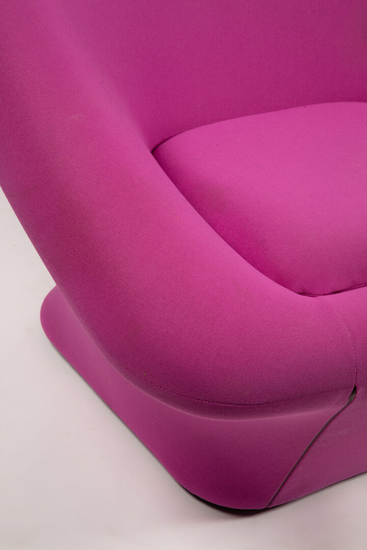 19 ESTIMATION: 500 / 800 € Pierre PAULIN (1927-2009) – ARTIFORT Editeur Fauteuil modèle F564 dit Nest, couverture de tissus violet Plaque de l’éditeur sous la base Taches H : 73 – L : 91 – P : 85 cm