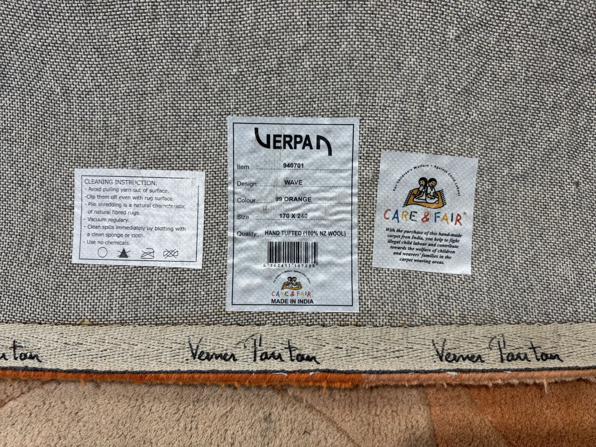 26 ESTIMATION: 400 / 800 € Verner PANTON (1926-1998) et VERPAN éditeur Tapis modèle Wave orange En laine tuffeté à la main, bolduc au dos 170 x 240 cm